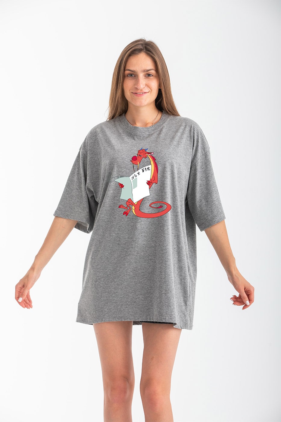 Collar: Crew neck. Fit: Regular. Material: cotton. Pattern: Printed. Color: Grey. Product Type: Straight. Sleeve length: Short. Length: Long.Size Details