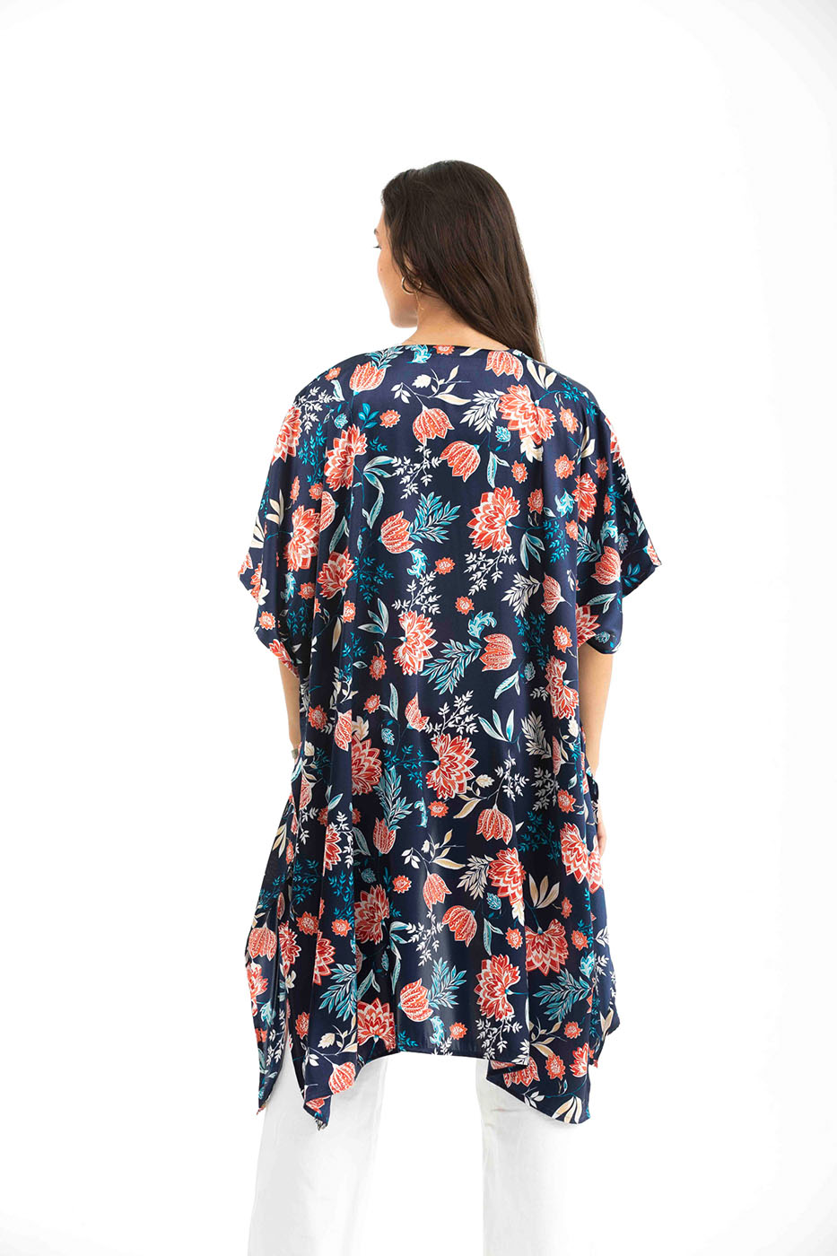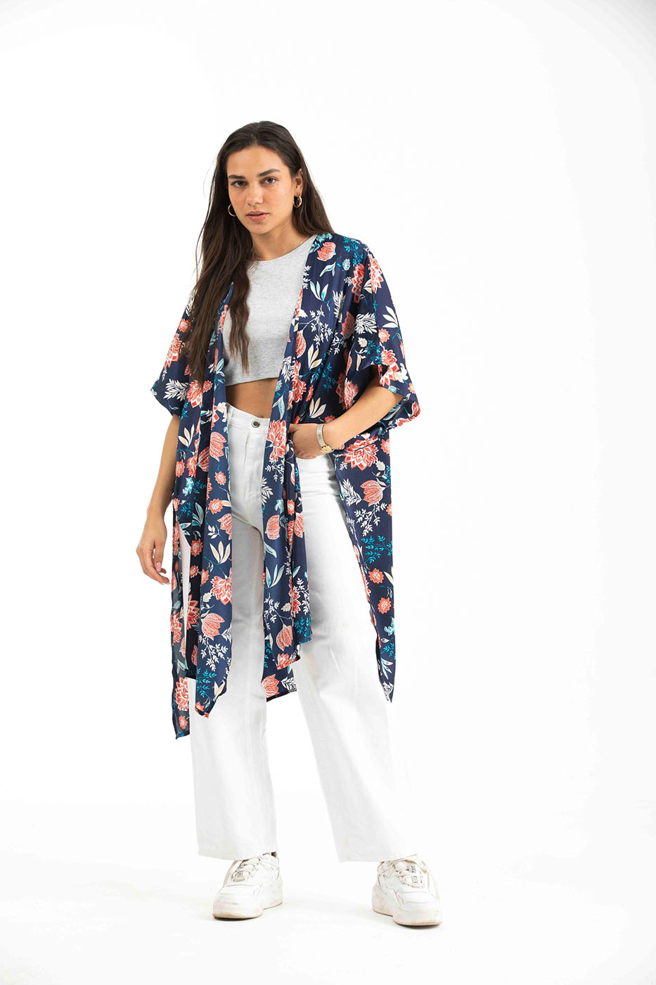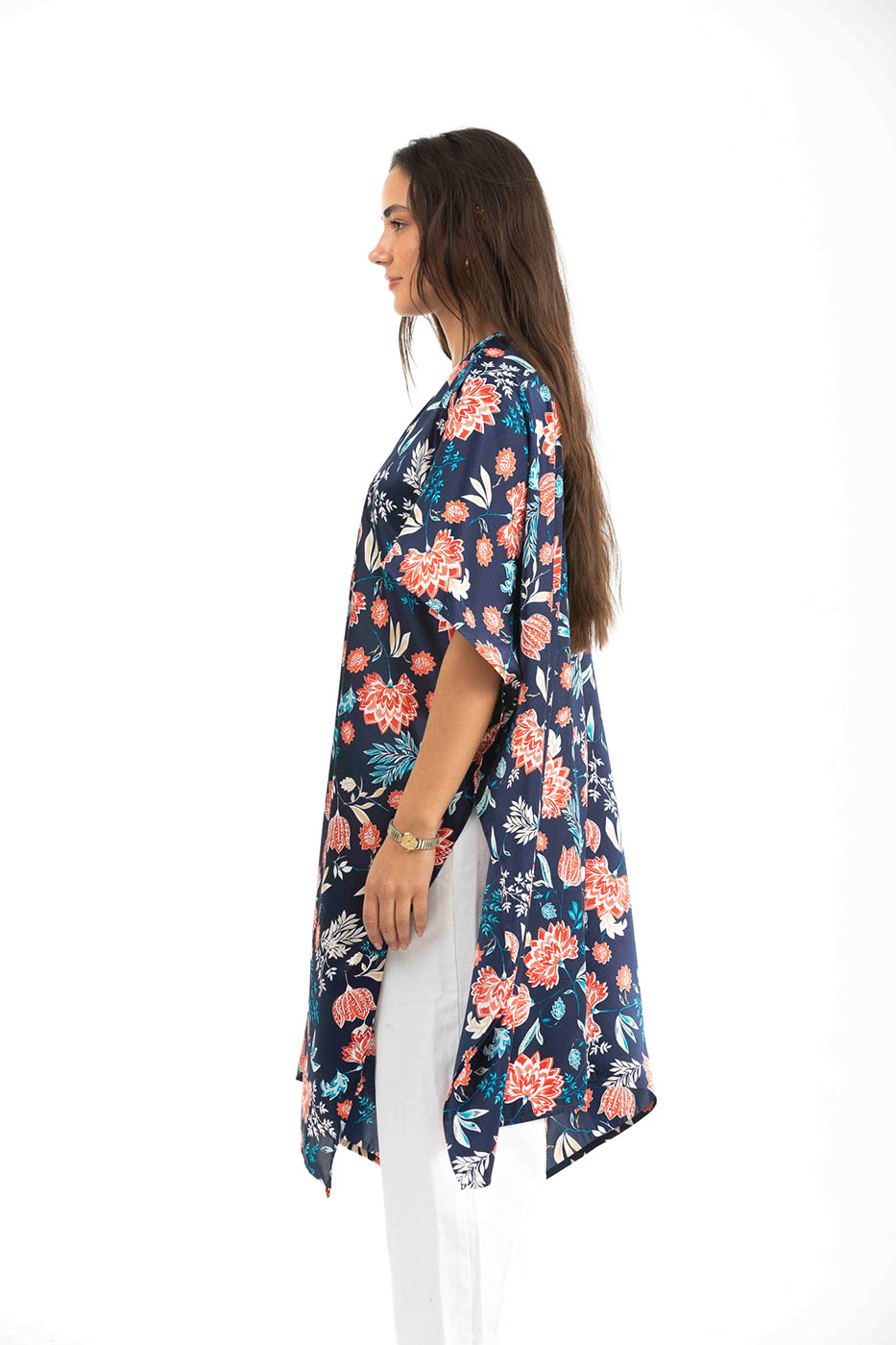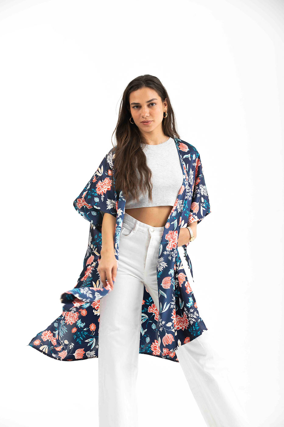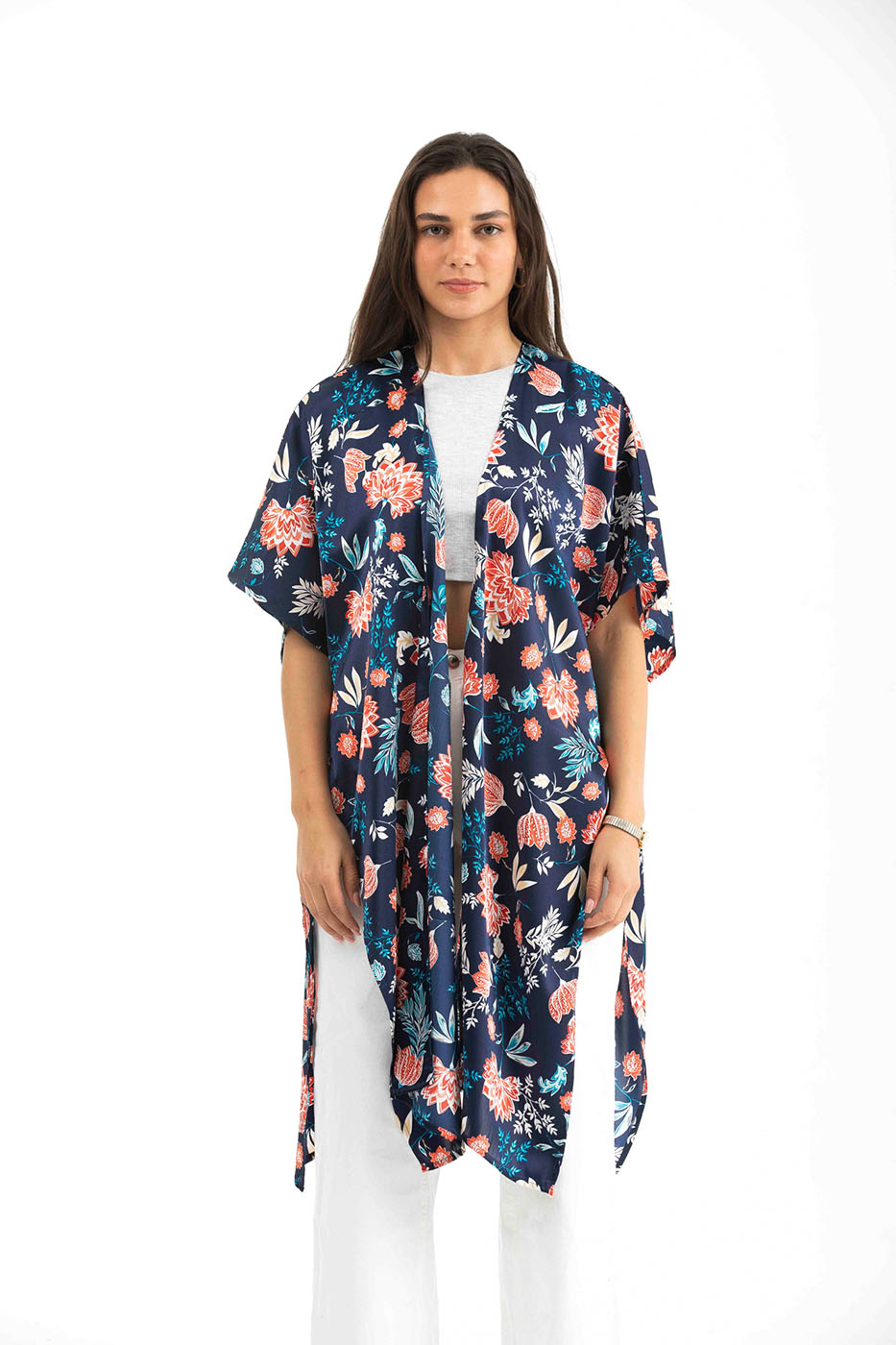 Be the first to review “Navy Blue Allover Foral Satin Kimono”