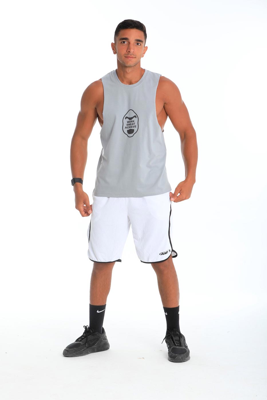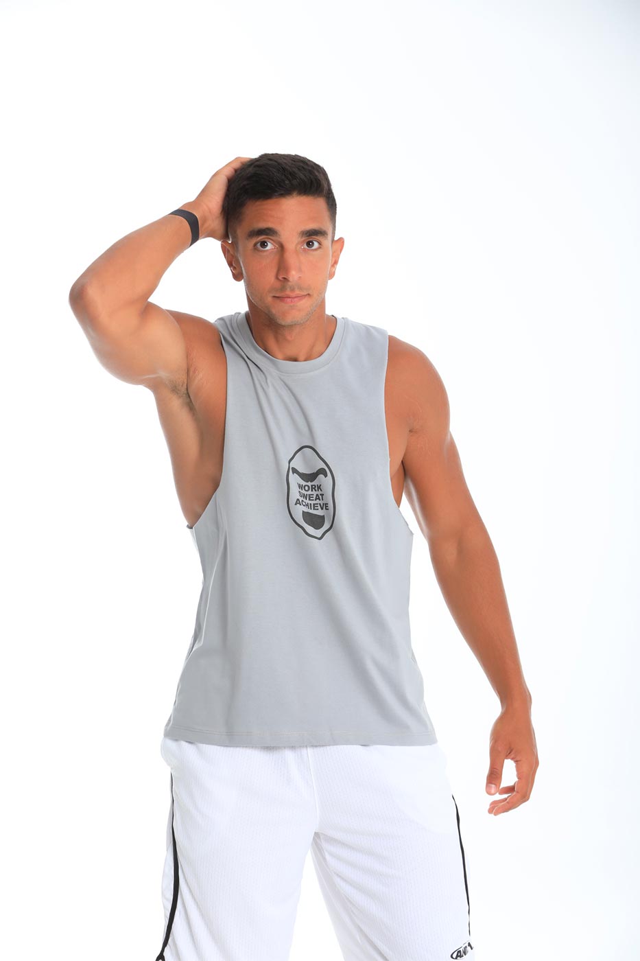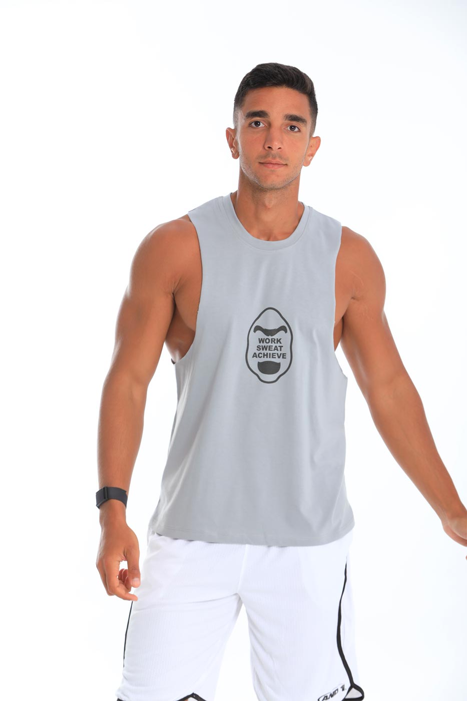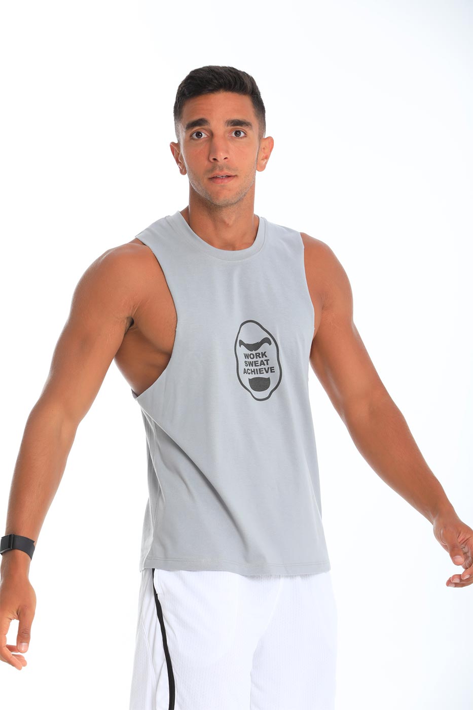 Work Sweat Achieve quote in gorilla visual on tank topSize Details