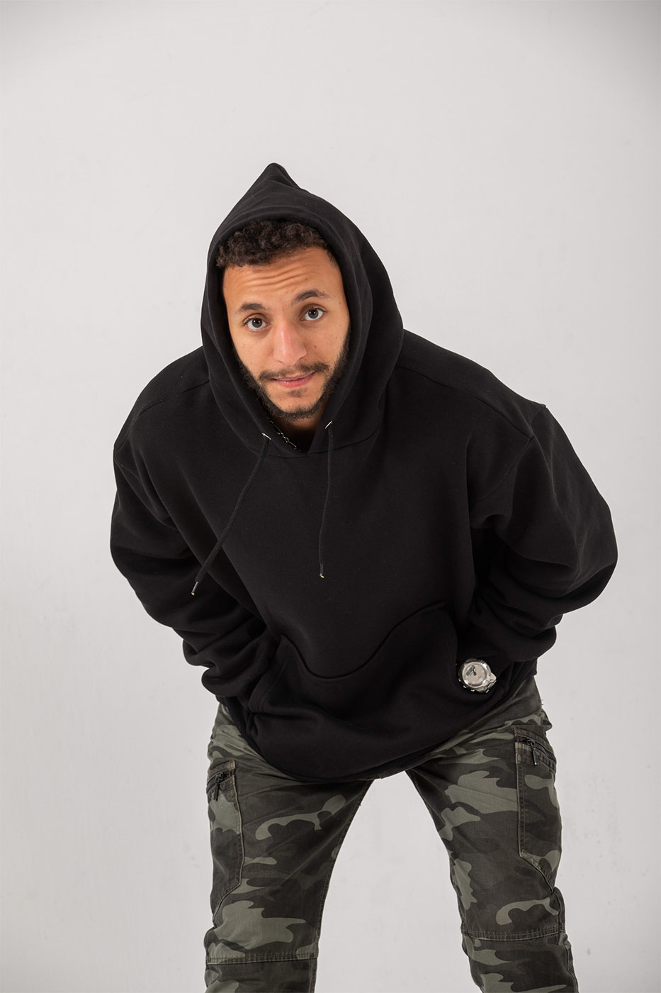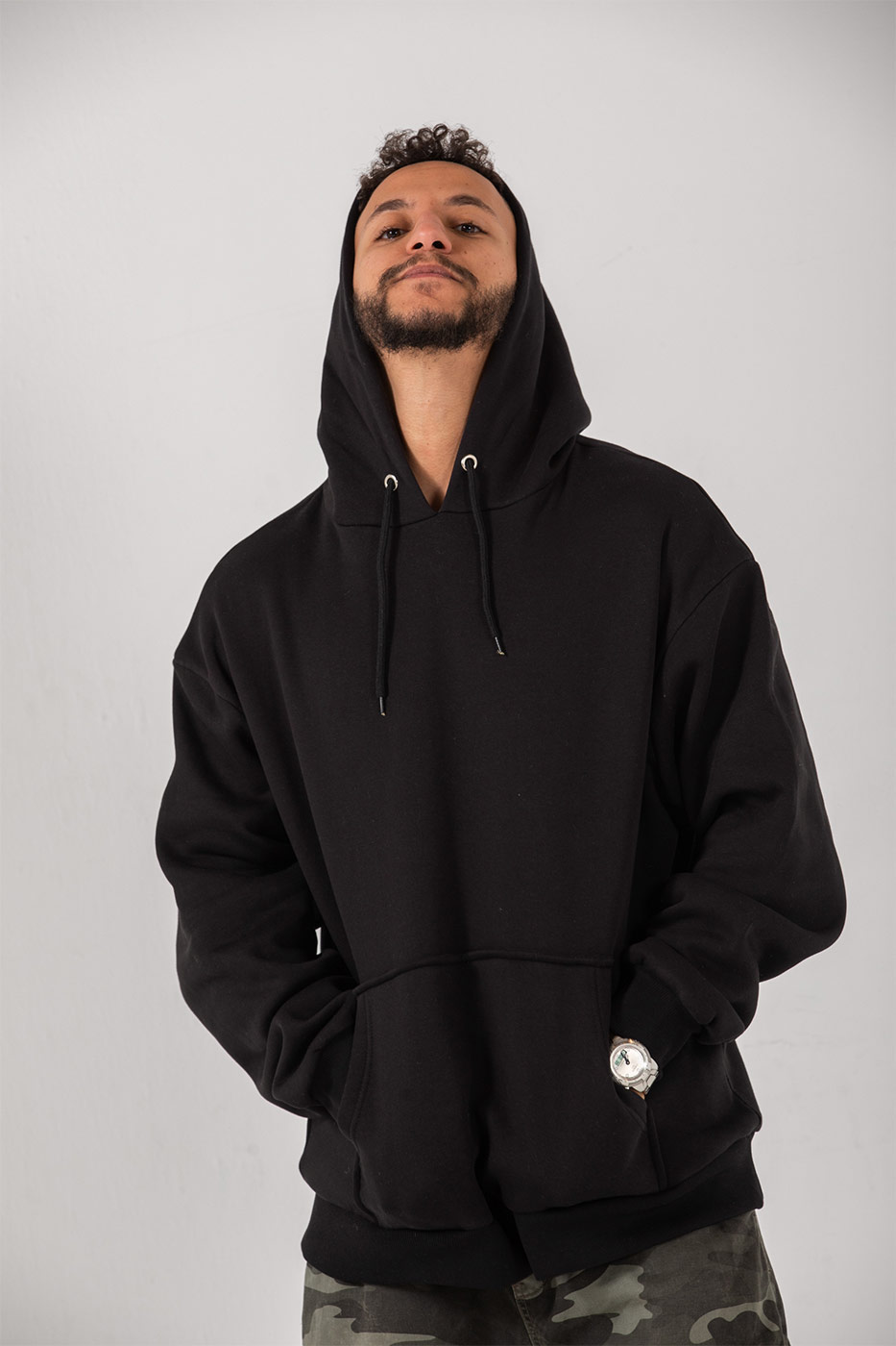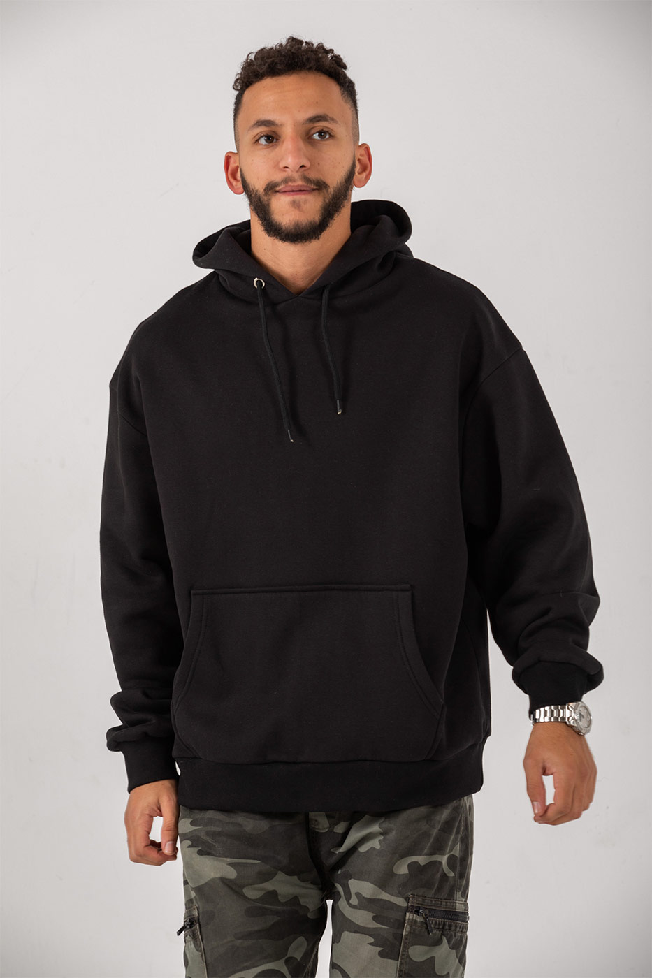 Loose fit sweatshirt with adjustable hooded collar and long sleeves. Front pouch pocket. Ribbed trim.Size Details