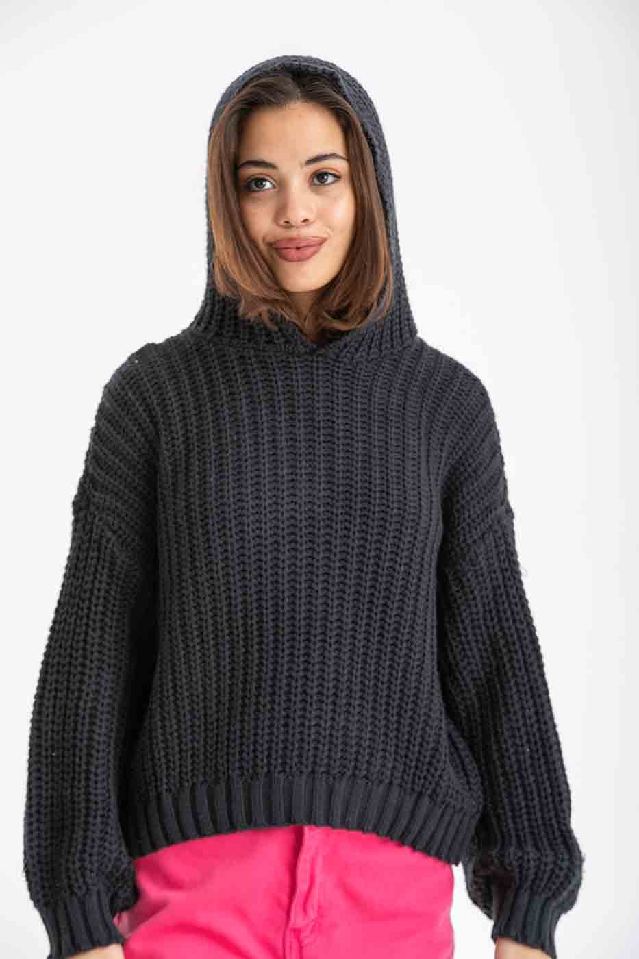 Oversized Hooded Sweater In Navy Blue - FYI