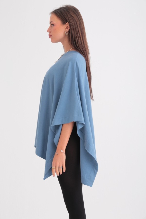 Oversized Knitted Poncho In Blue