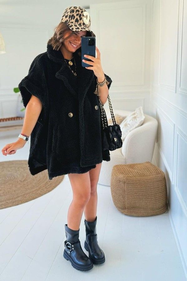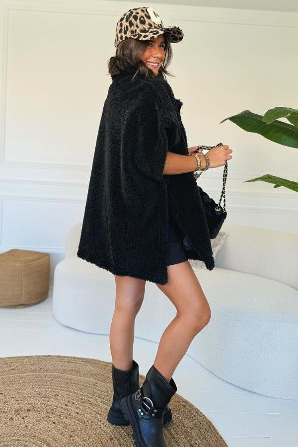 Oversized teddy Vest In Black