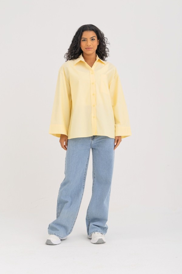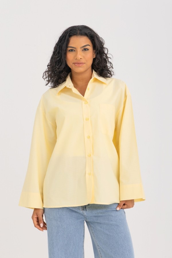 Oversized Wide Cuff Yellow Shirt