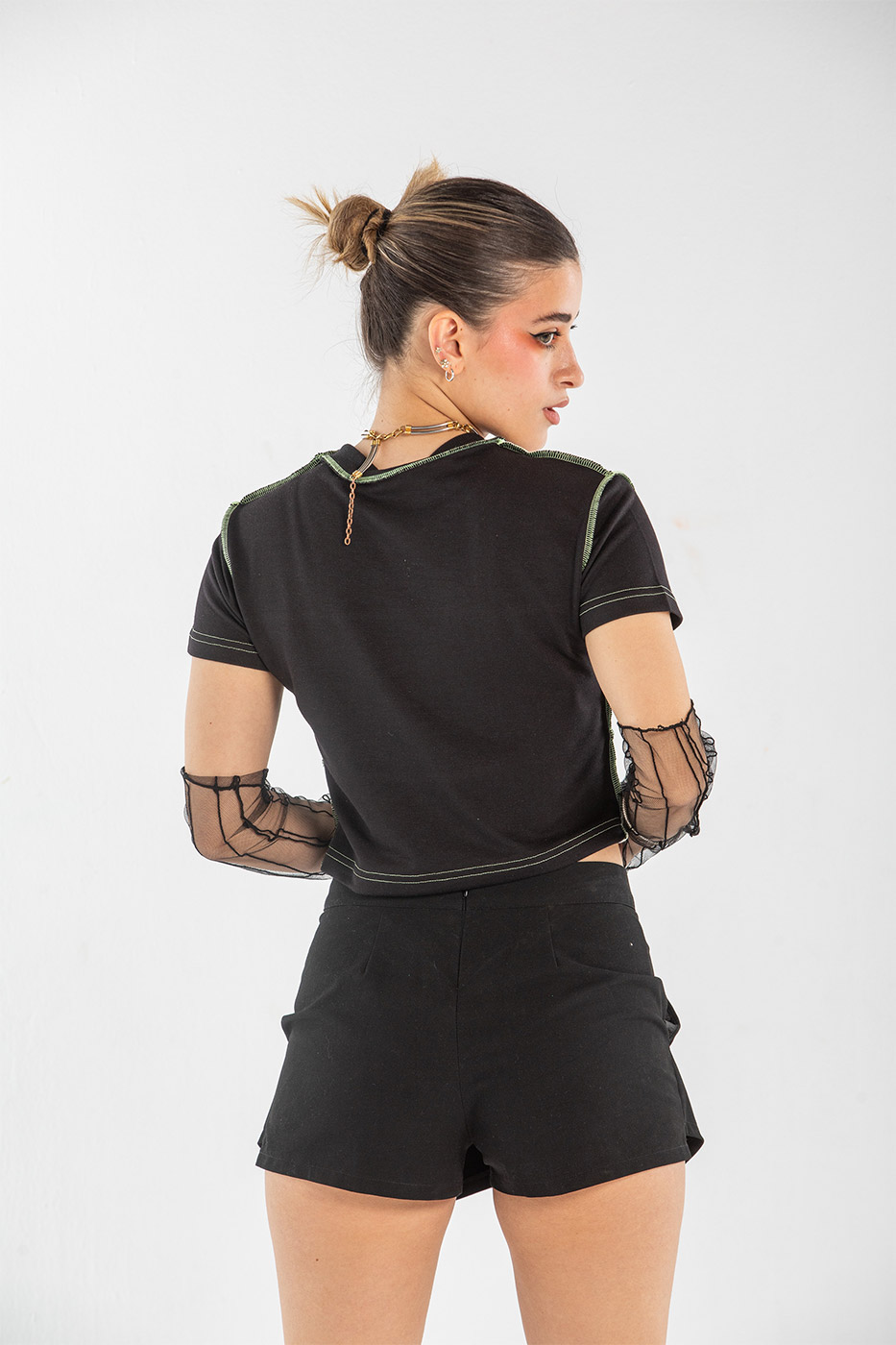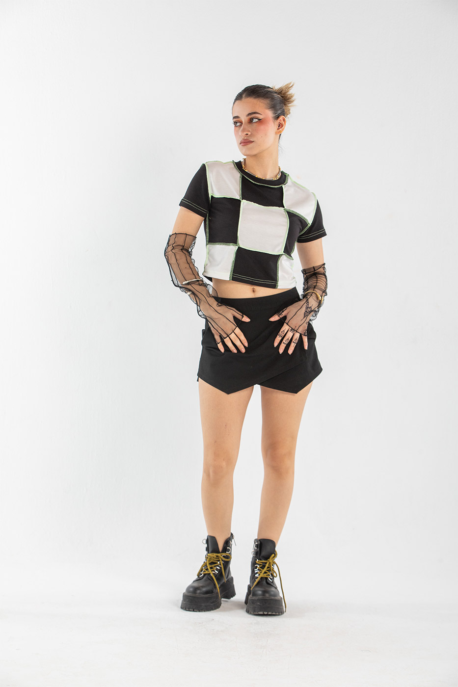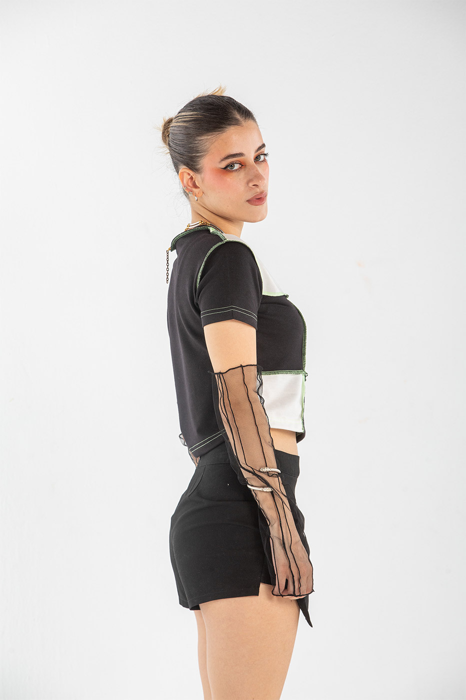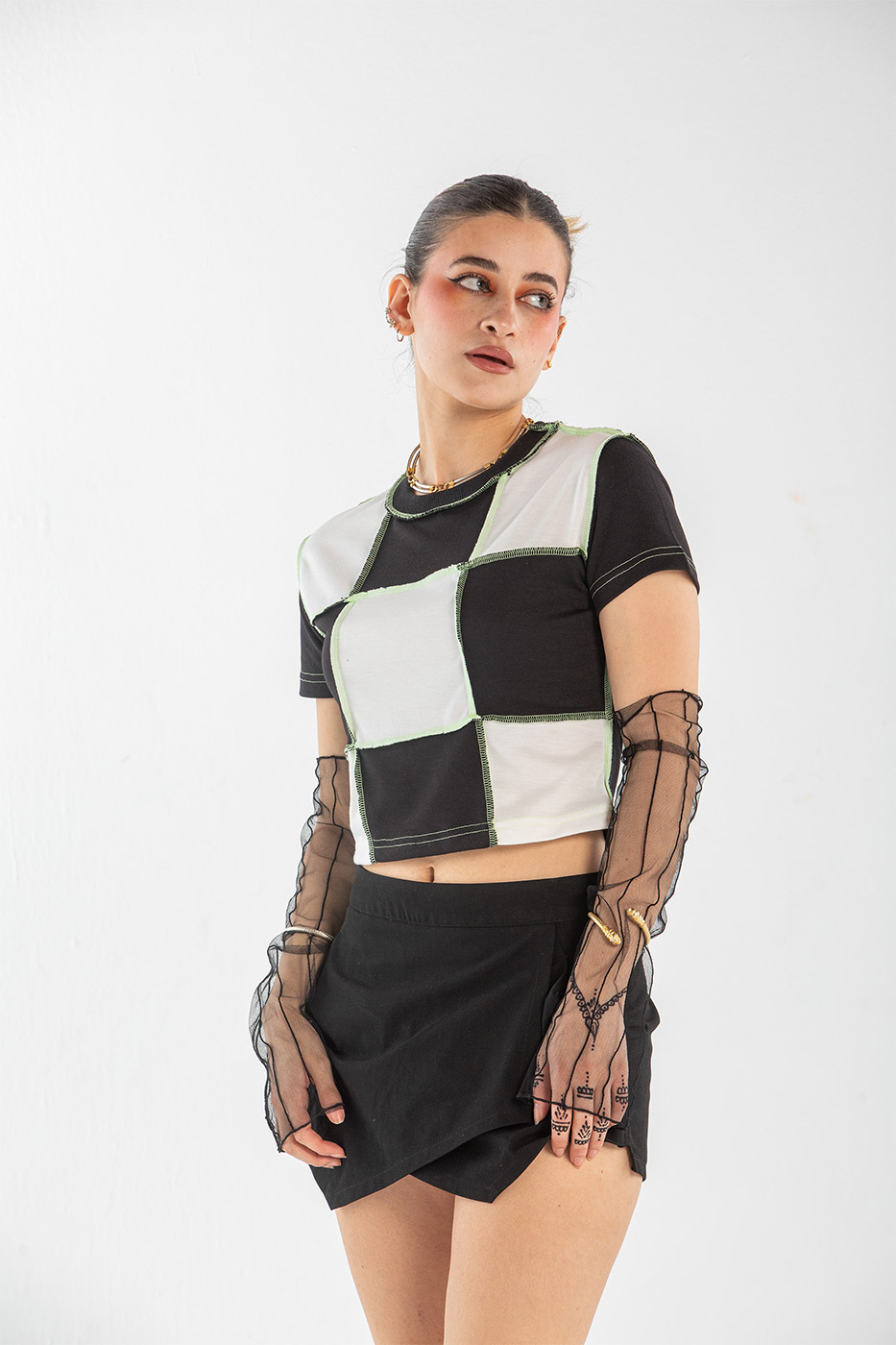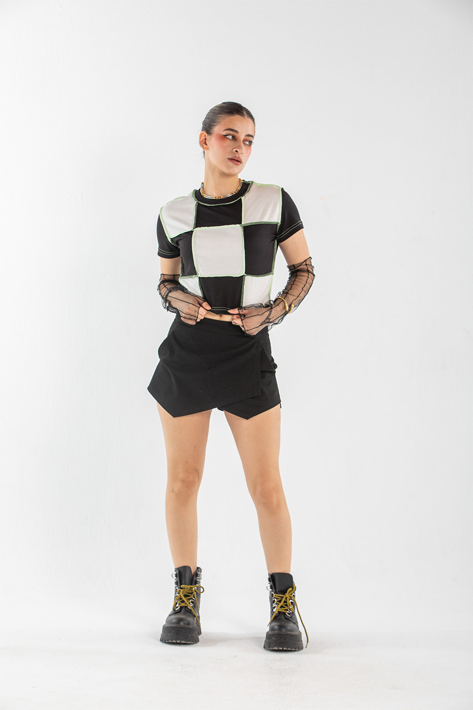 Be trendy with our stylish top that featuring a patchwork design and raw hem detailing, just match it with a denim, congrats, you just pulled out an outfit.Size Details