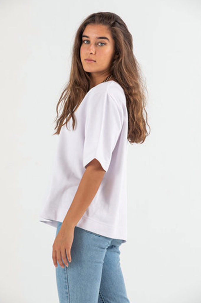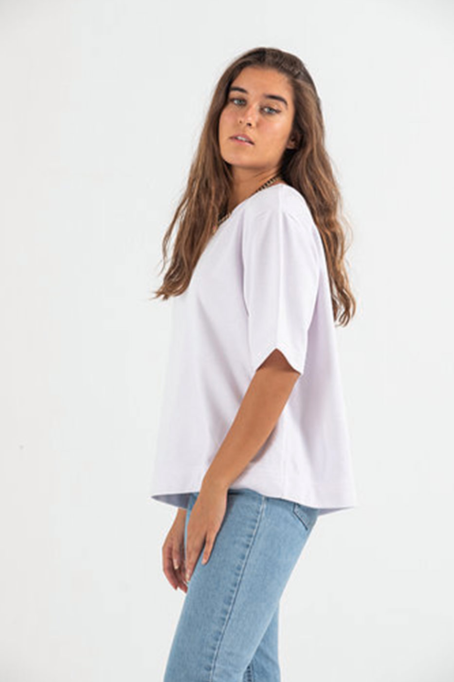 Add this top to your basics edit. This top features a round neck, short sleeves and has a loose fit. Style it with your favorite jeans and sneakers and you are ready to go!Size Details