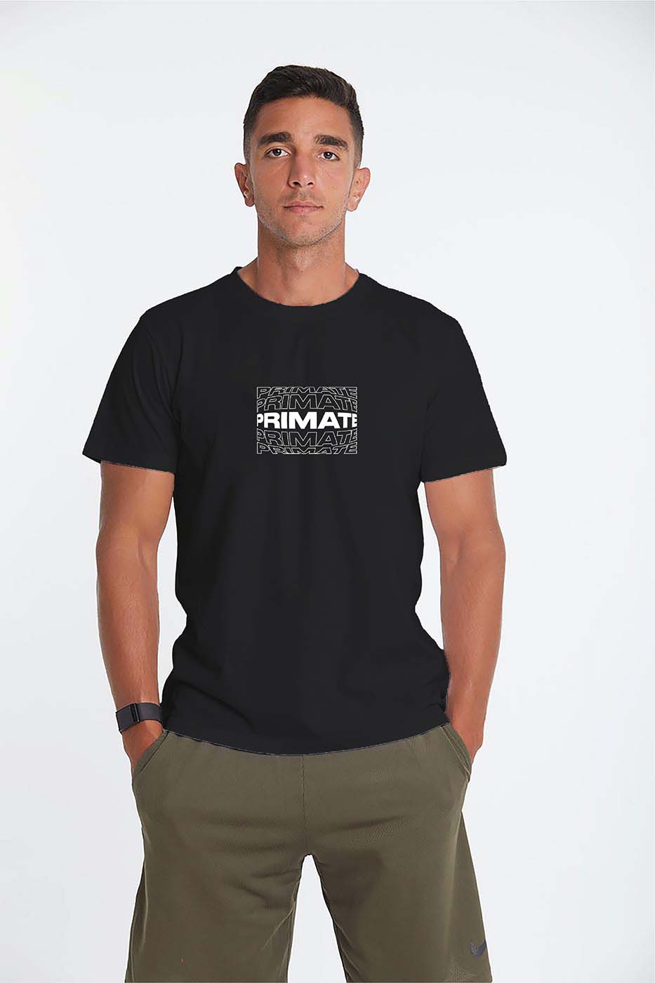 Primate Closed T-shirt In Black With short sleeves.Size Details