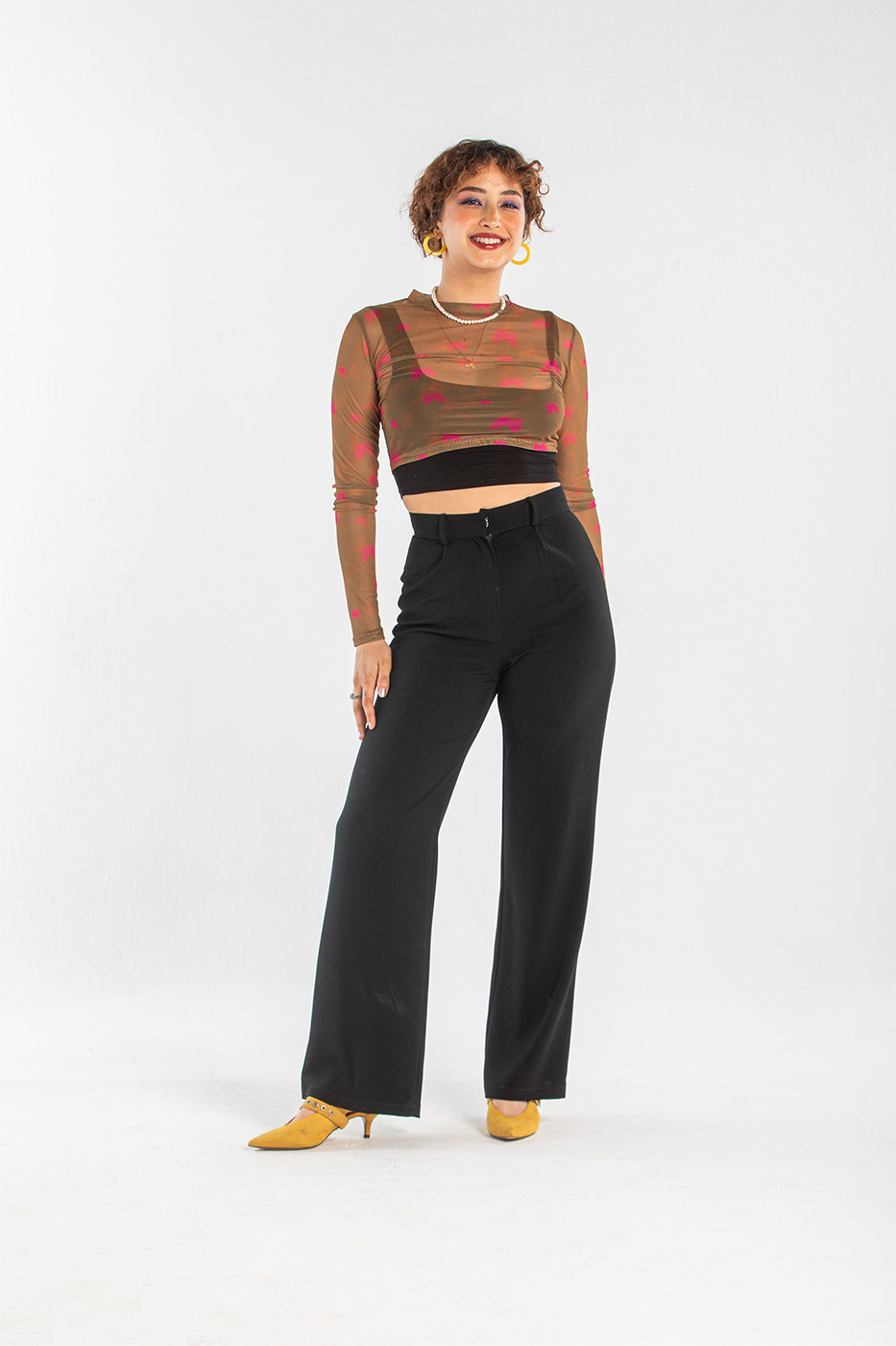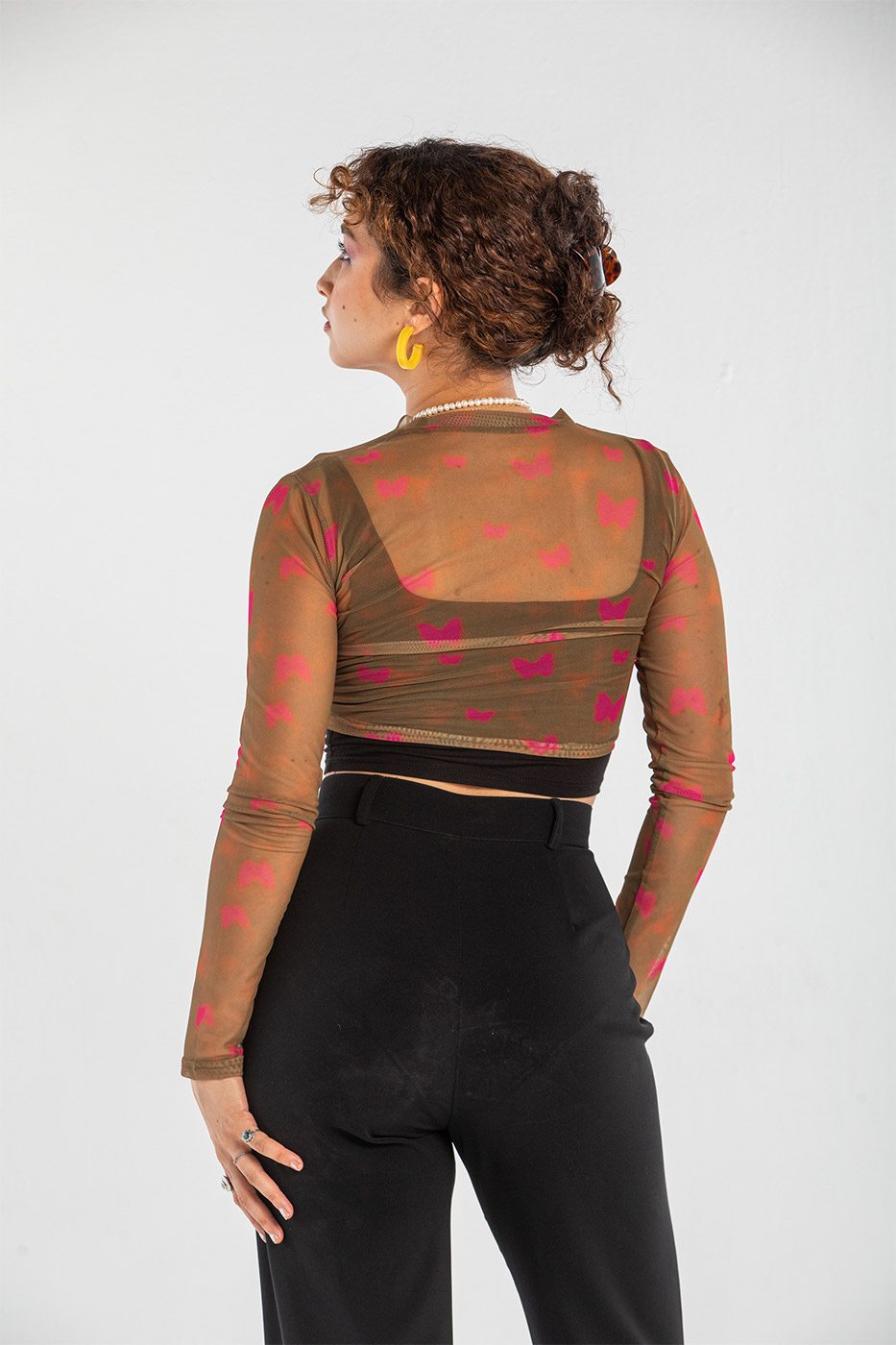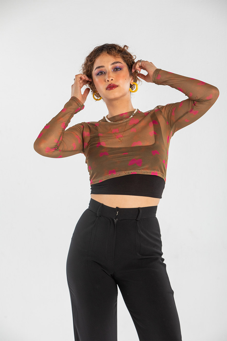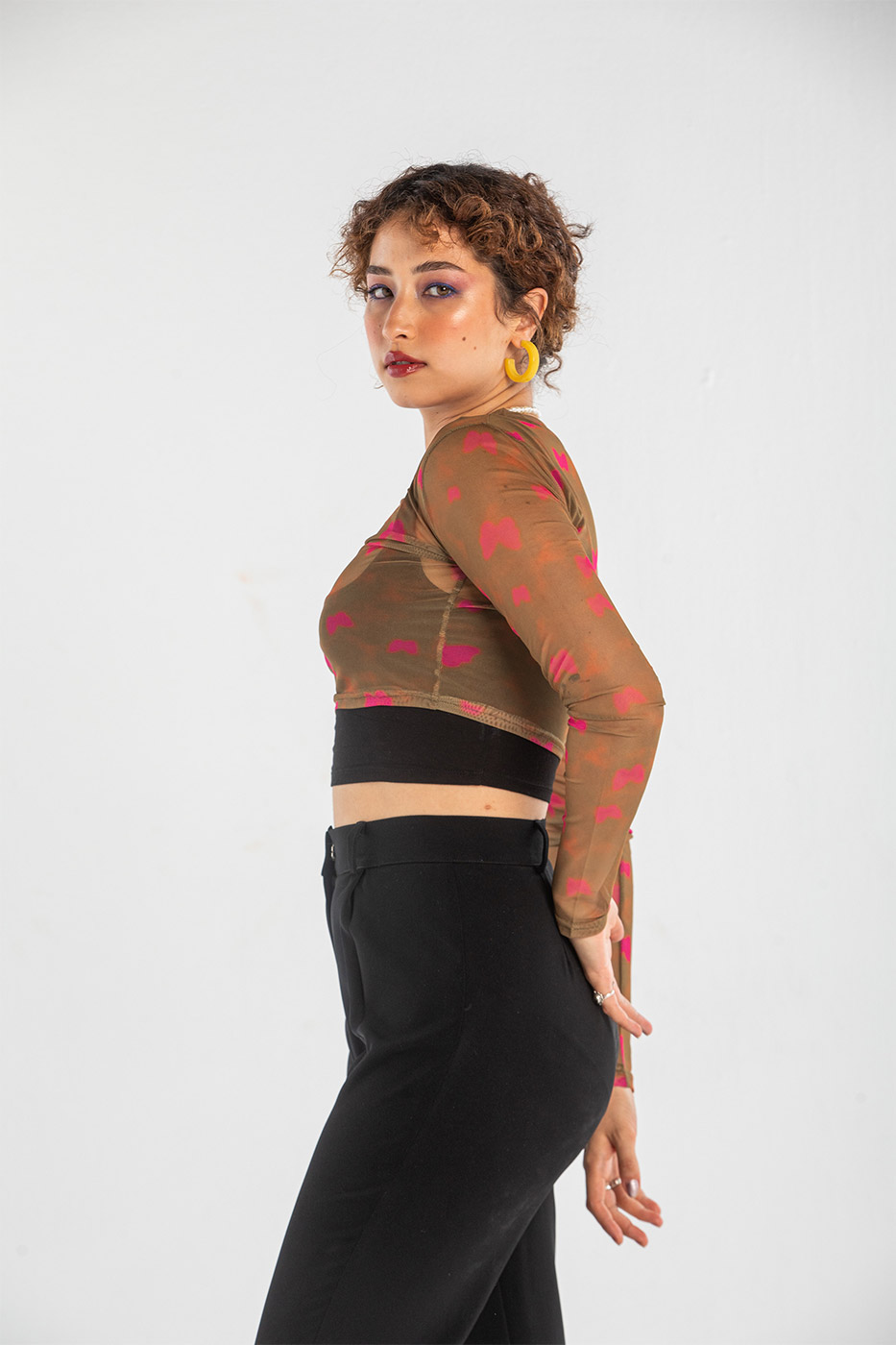 Add some attitude to your new season wardrobe with this top. Featuring a black textured mesh with a cropped fit.Size Details