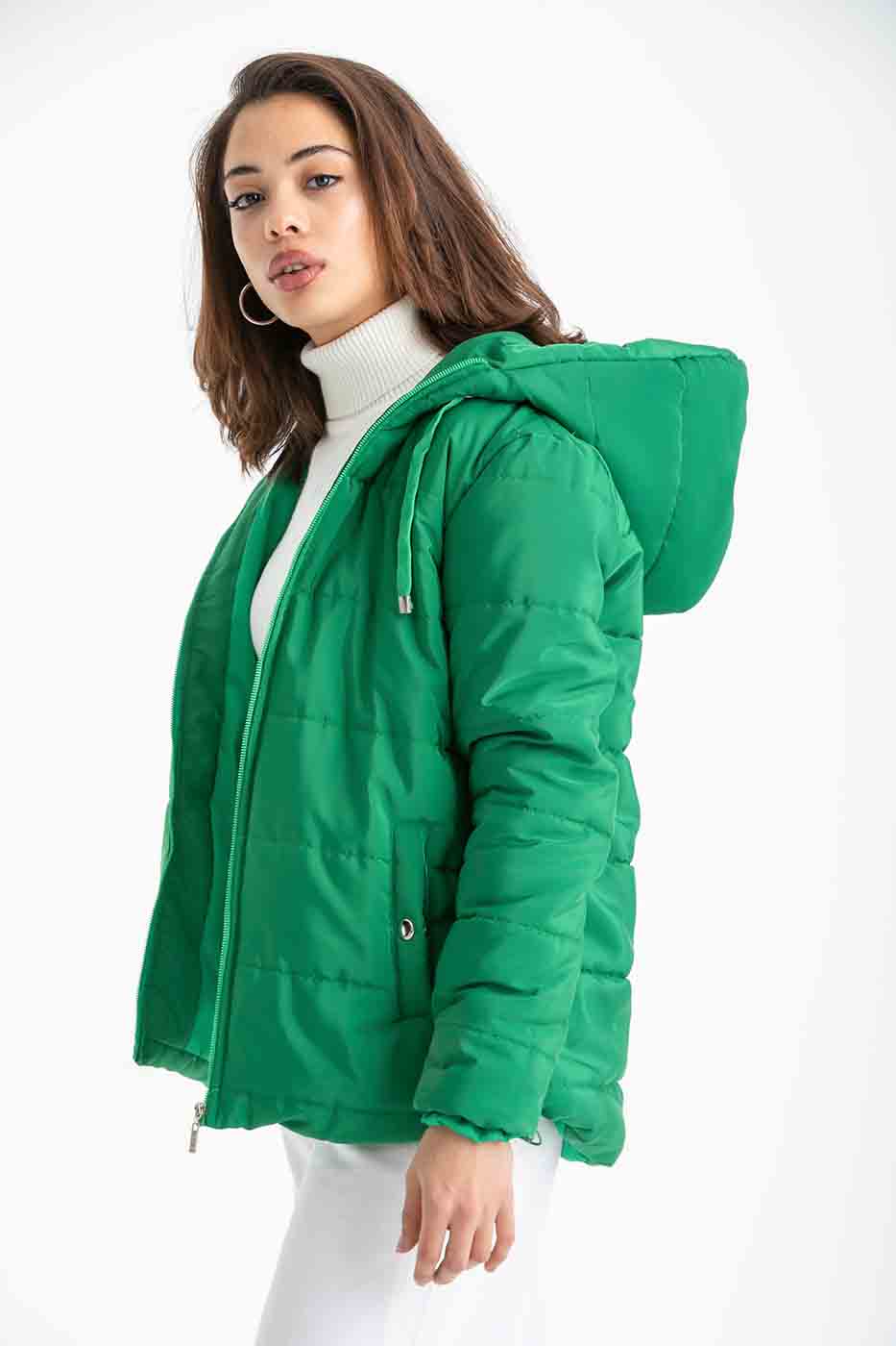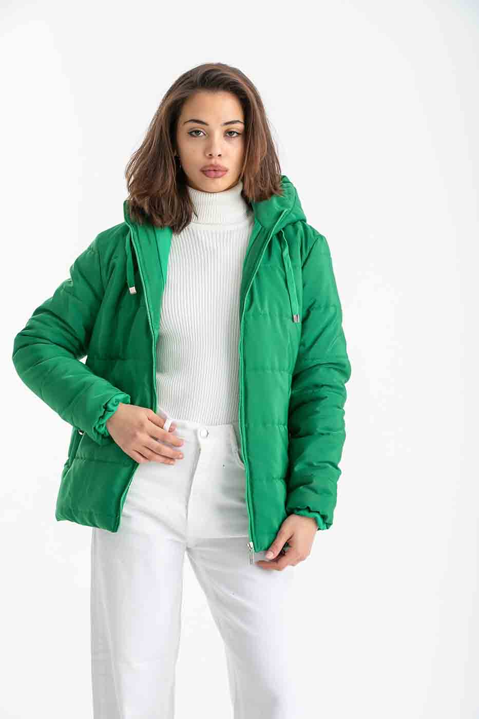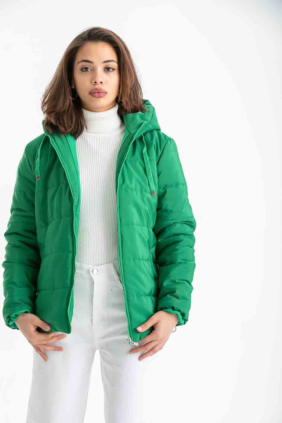 Puffer Zip Up Jacket In Green – ELLE
