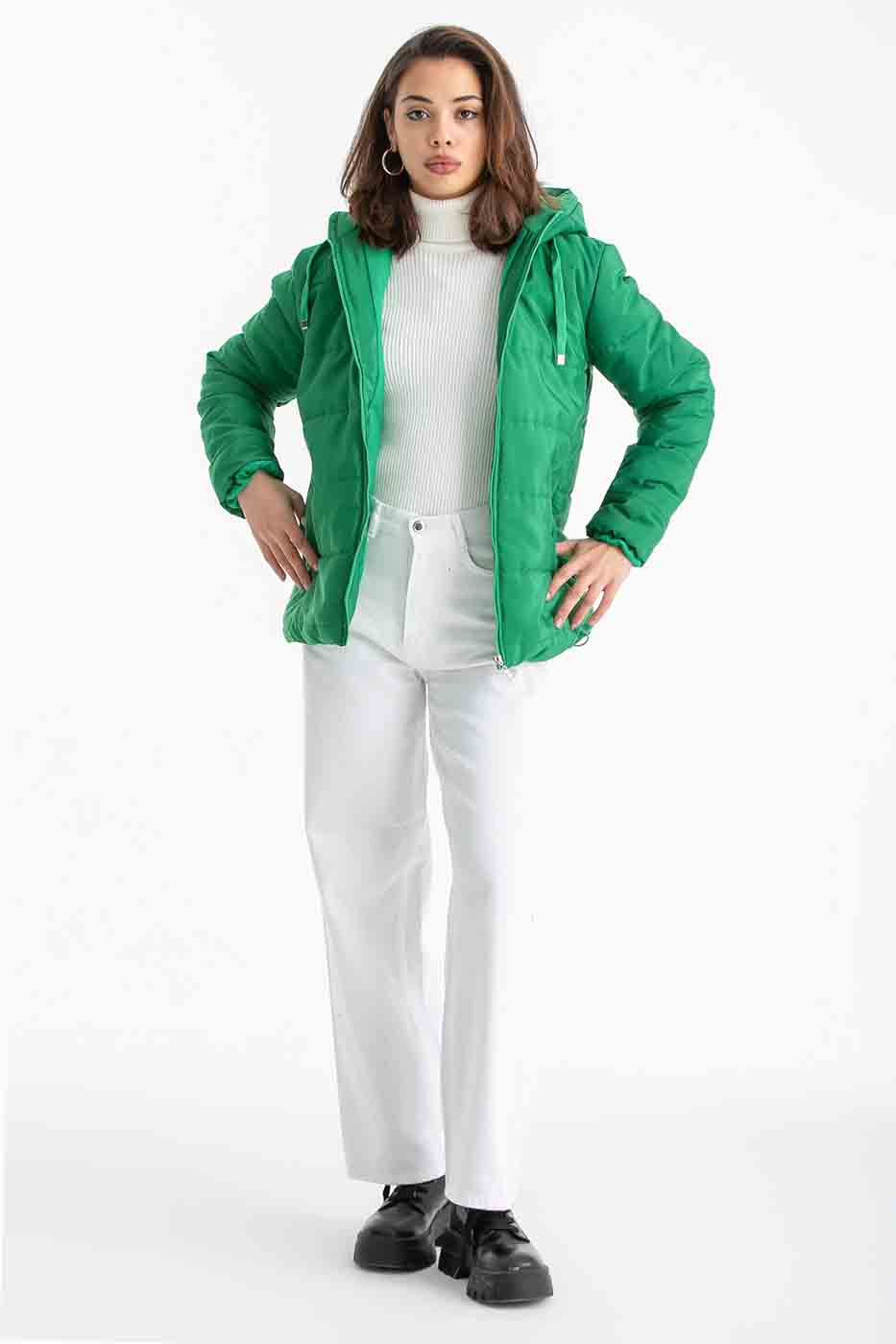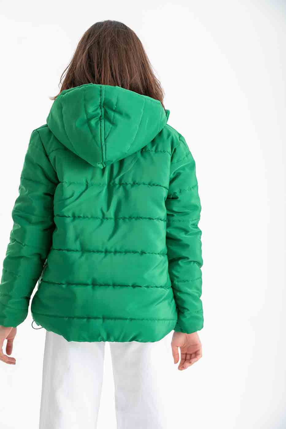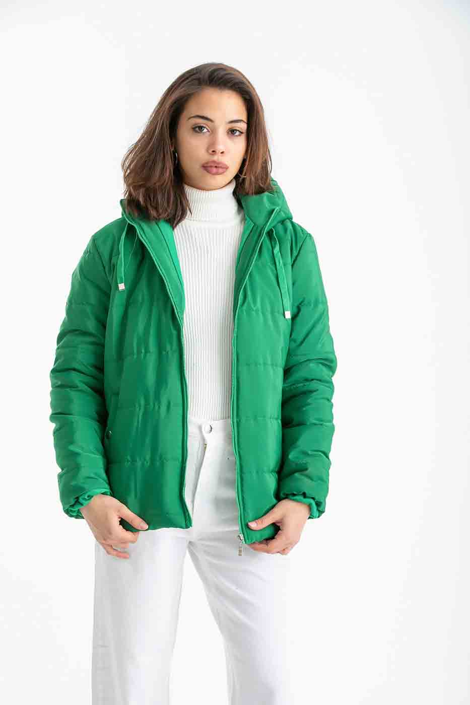 Puffer Zip Up Jacket In Green – ELLE