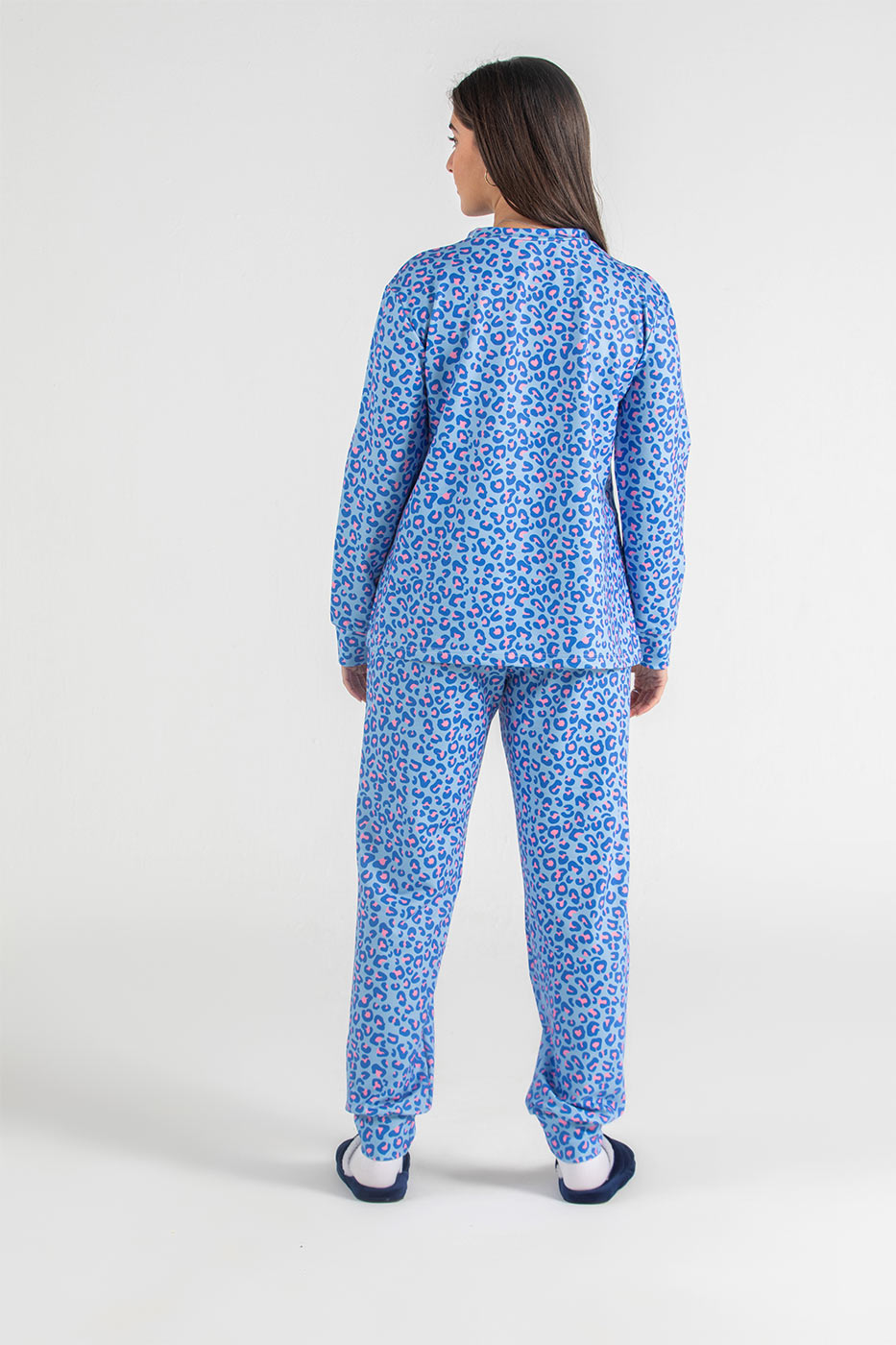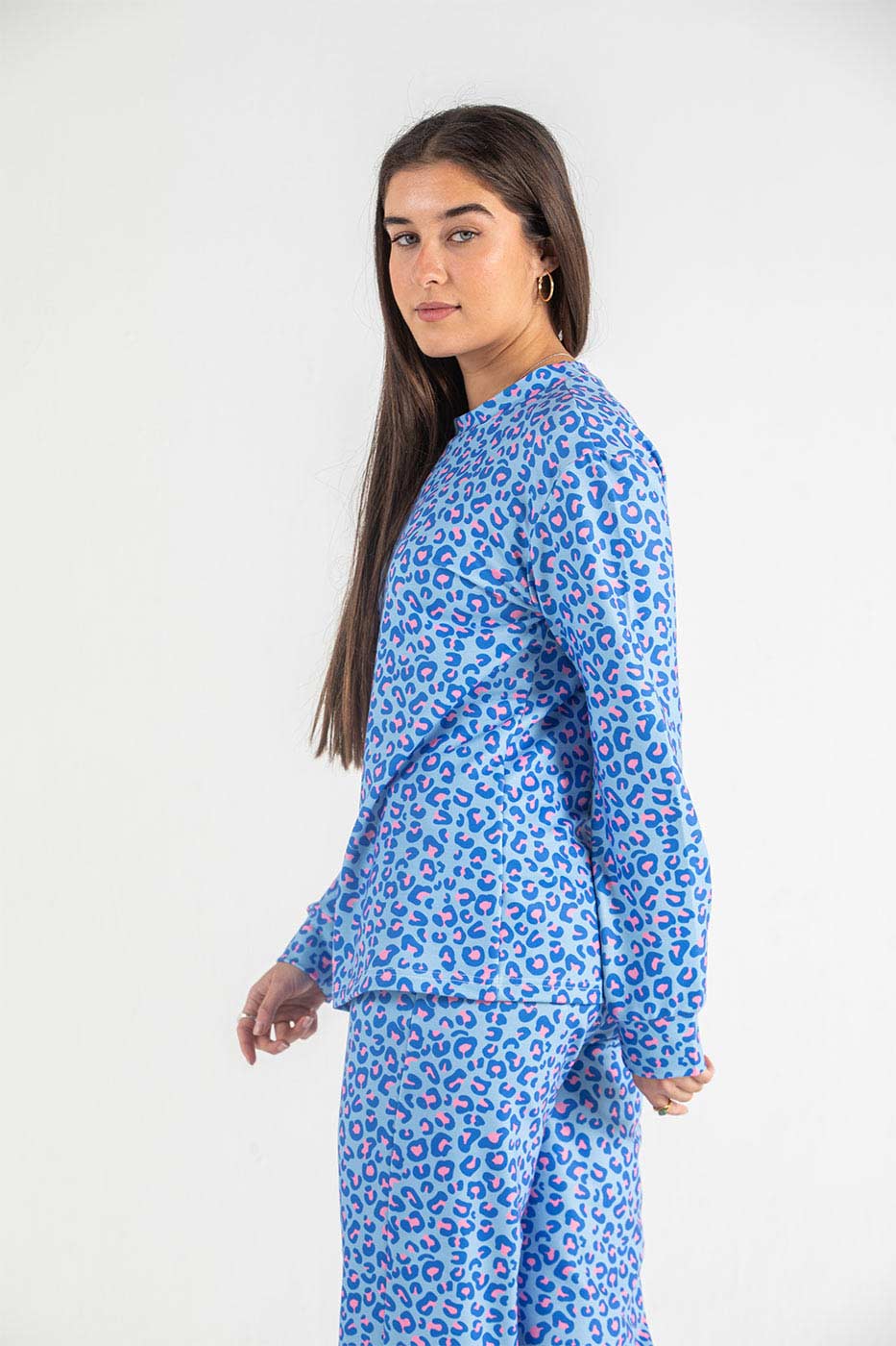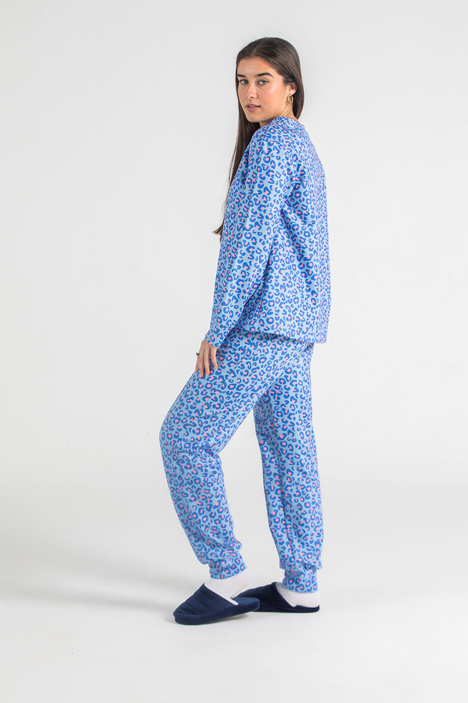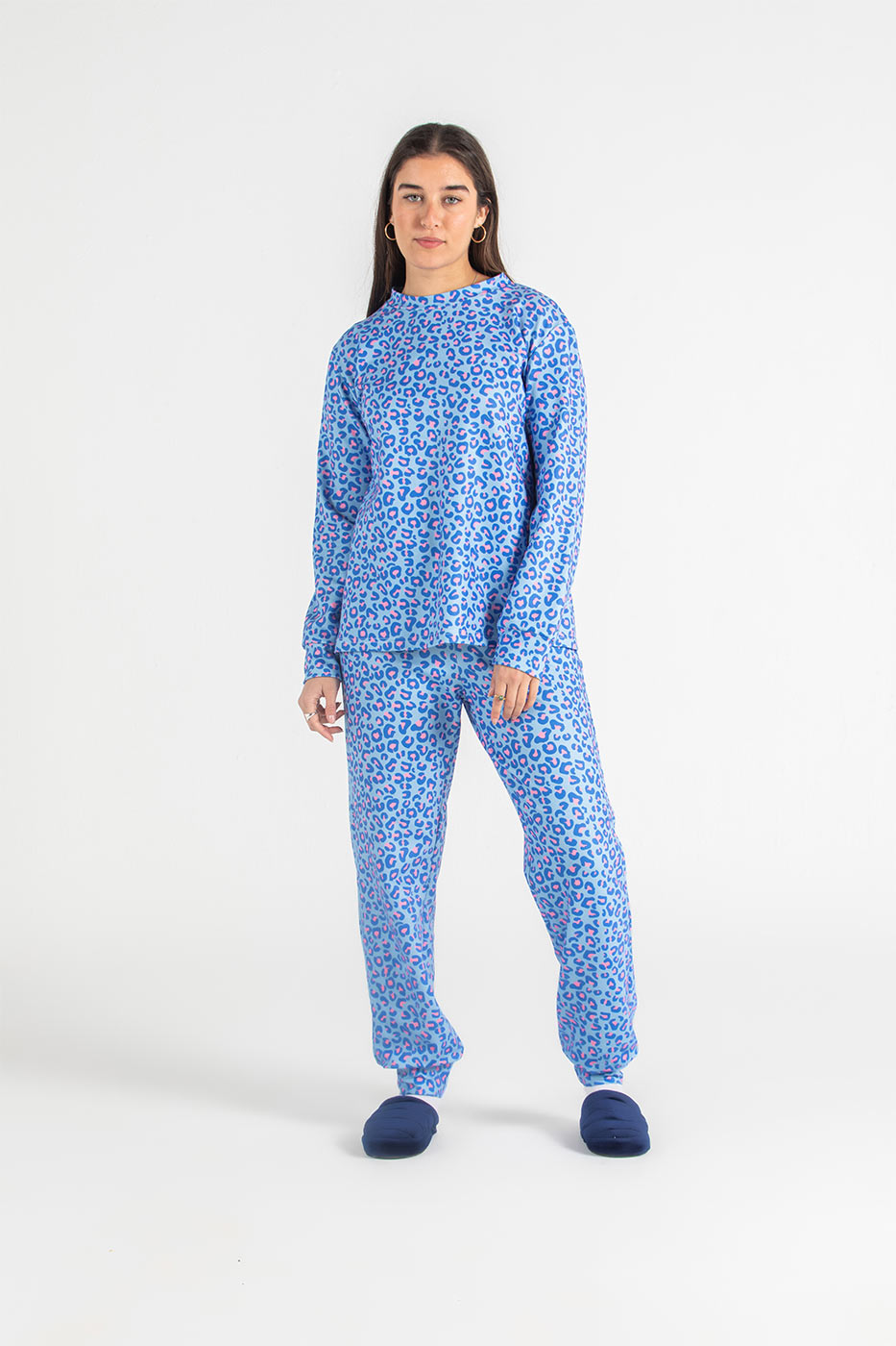 Lounge in our stylish and cozy Printed Pyjama set with it's soft lycra cotton material. The set includes a long sleeved crewneck top and straight fit bottoms with an elasticated waist and trims.Size Details
