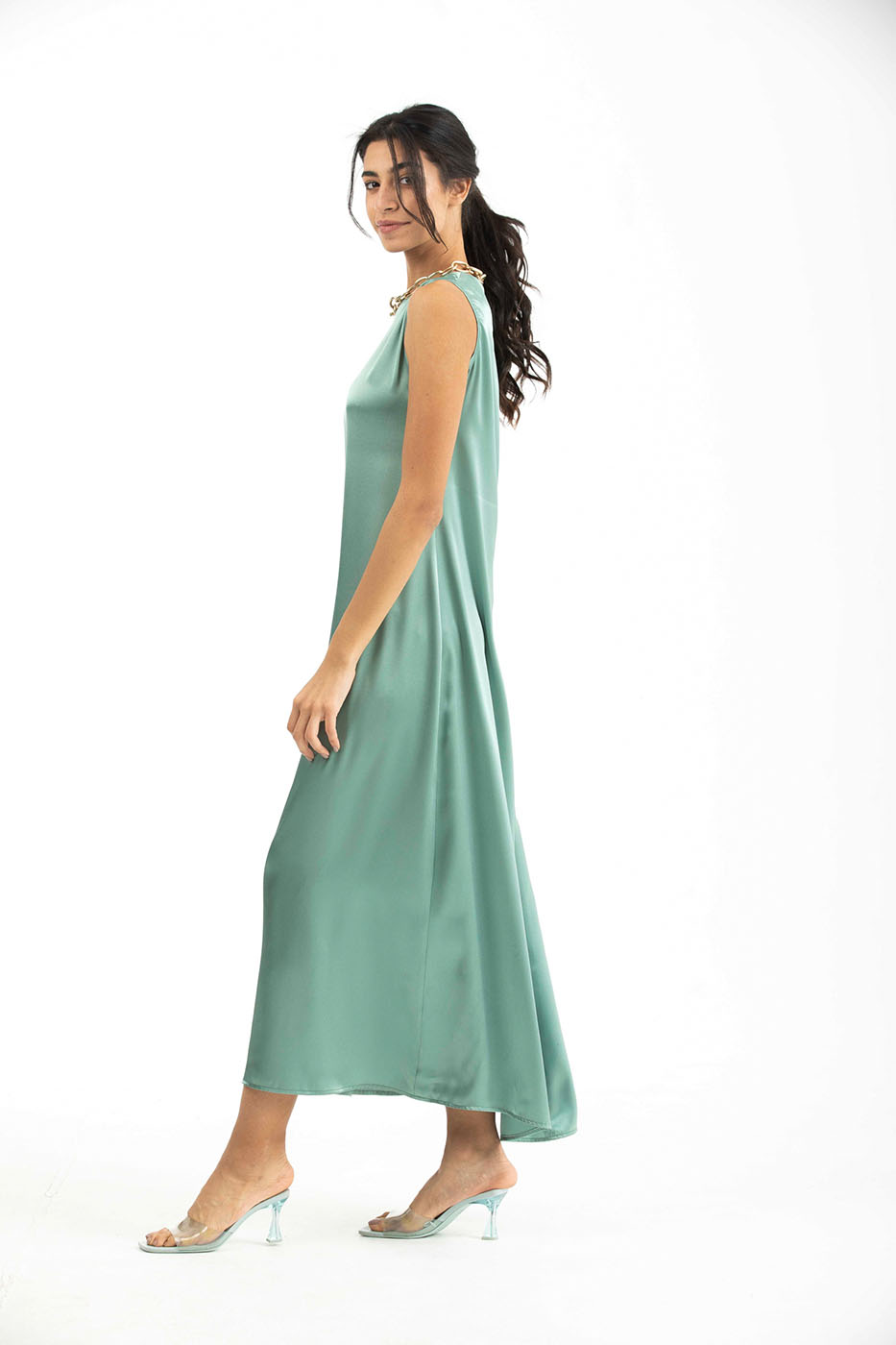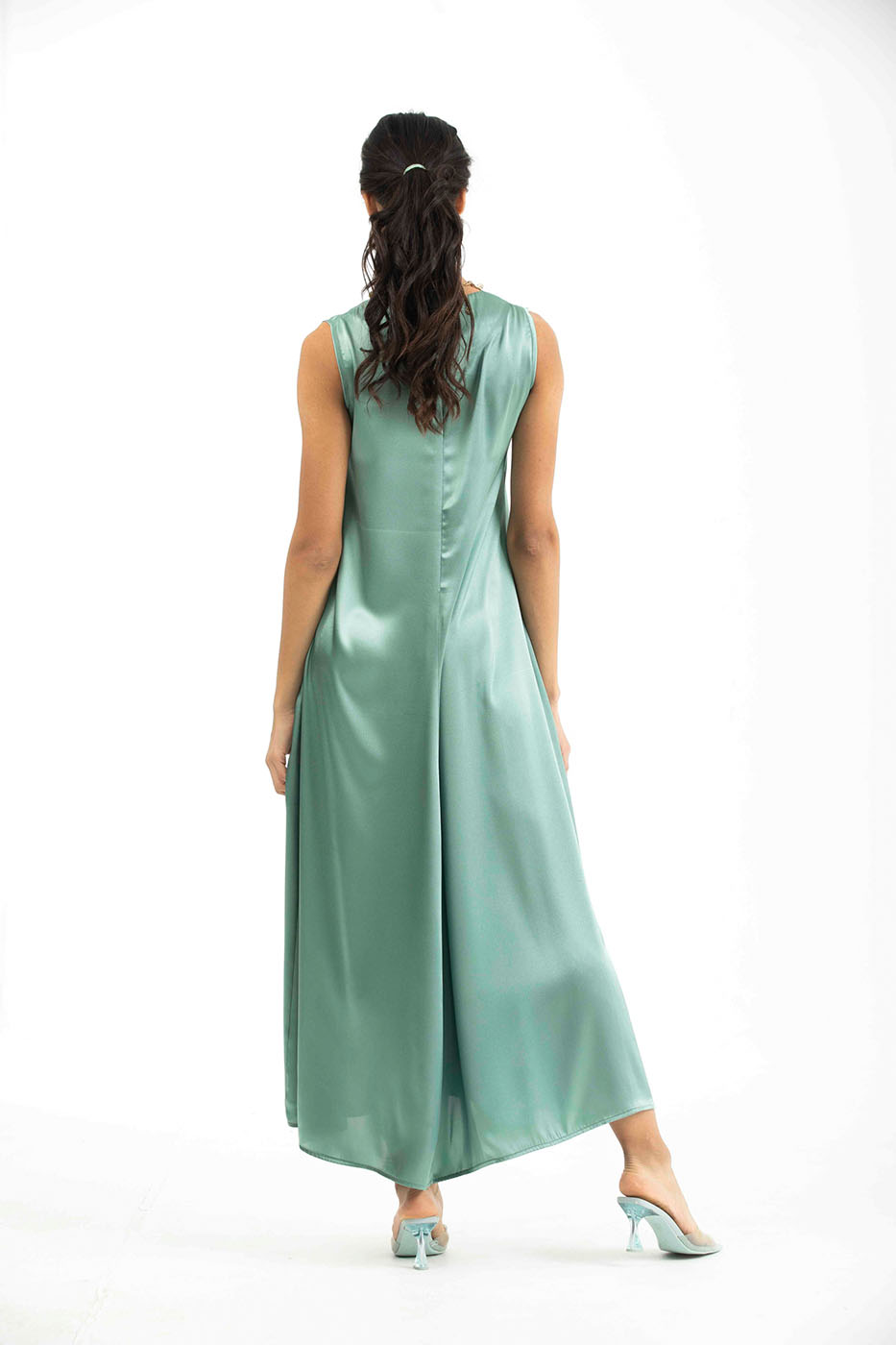 Purple Satin Non Sleeve Long Dress