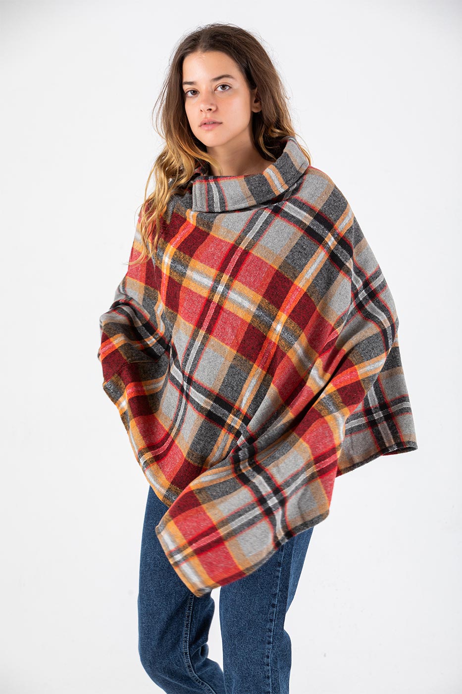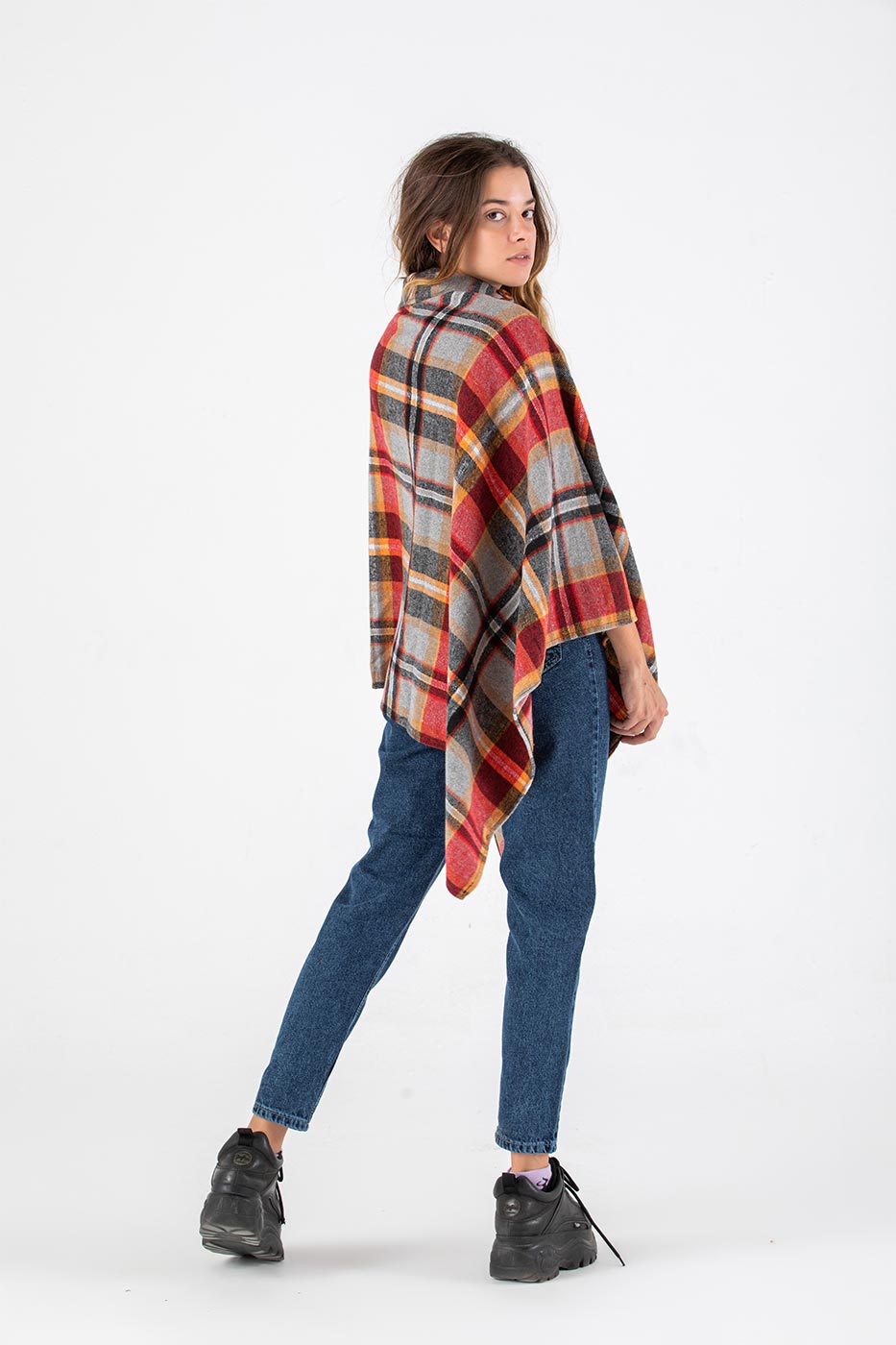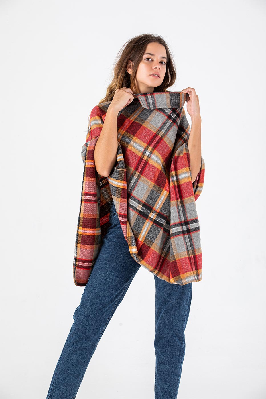 Cape in a soft, fine-knit wool blend with open sides. with a buttom close the next.Size Details