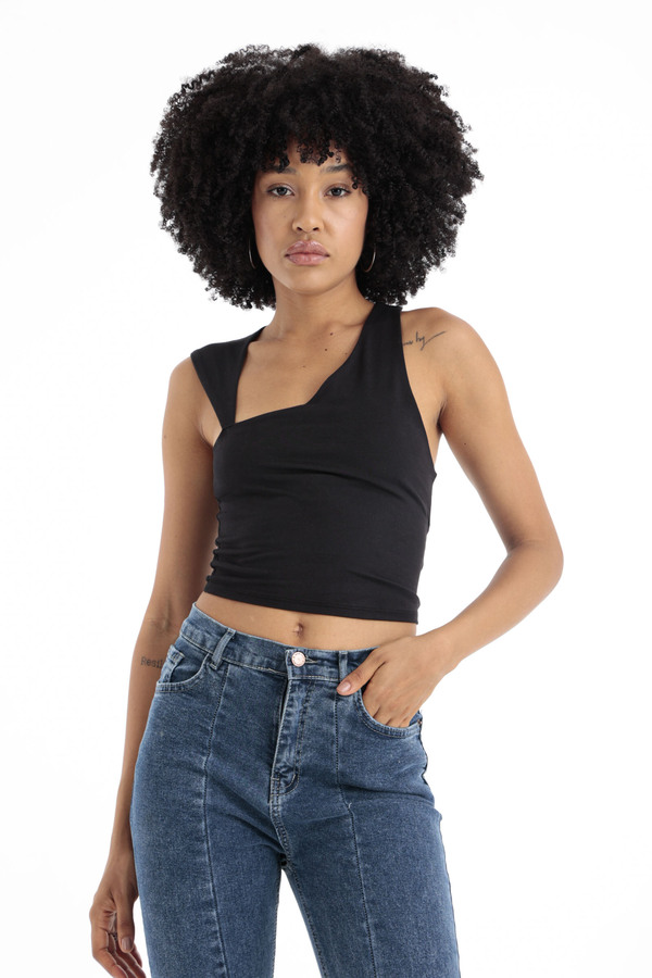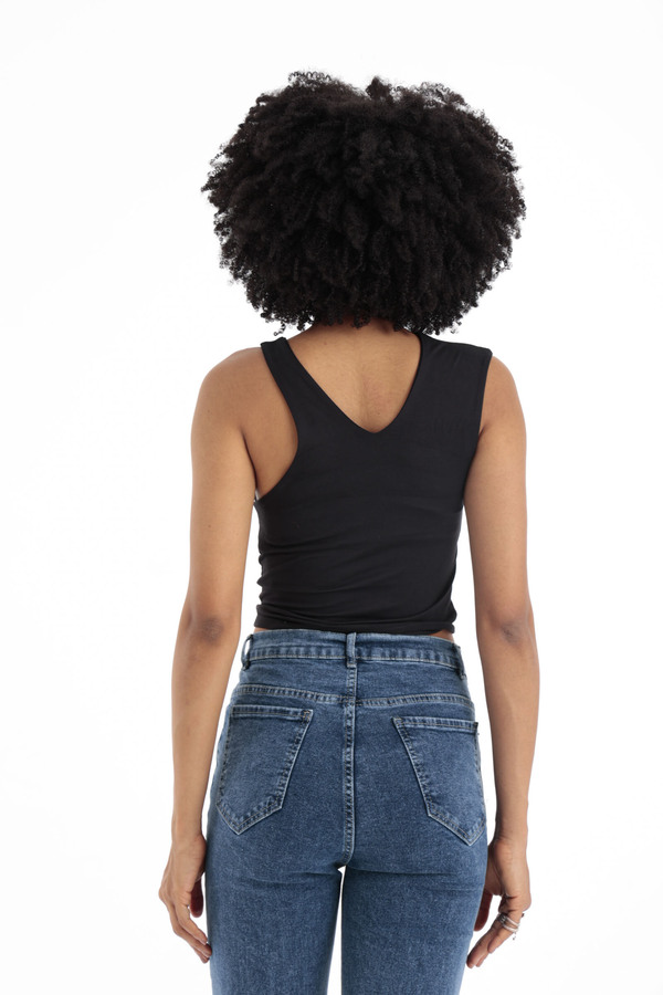 Rib-knit Crop Tank Top In BlackSize Details