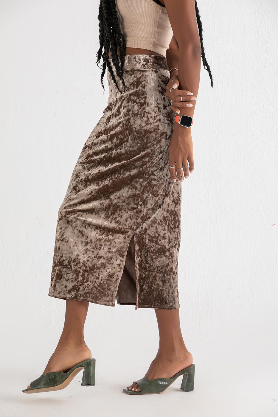 If you're into wearing long skirts and you still cant find the perfect one, we have one for you. Perfect for a fancy night out, this calf length, regular waist tight skirt with it’s velvet texture and cloudy effect will defeinitely get you stealing the show!Size Details