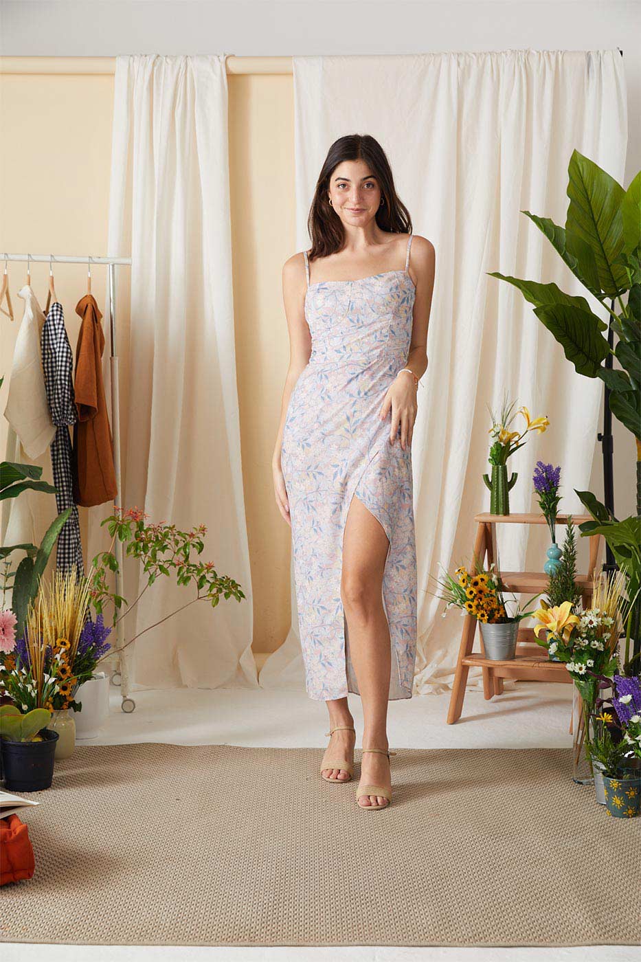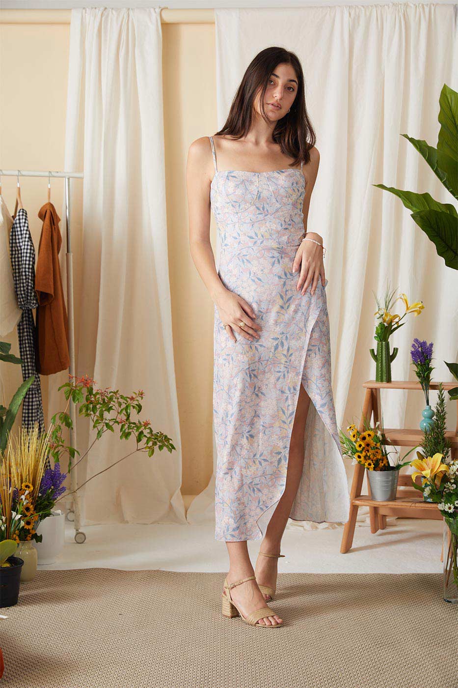 Here's a floral dress that takes you from breakfast outings to a night party smoothly! this dress features a sweet heart neck, cami straps, square back, back zip closure and a stylish high slit. Put your favorite heels on and you are just on fleek !Size Details