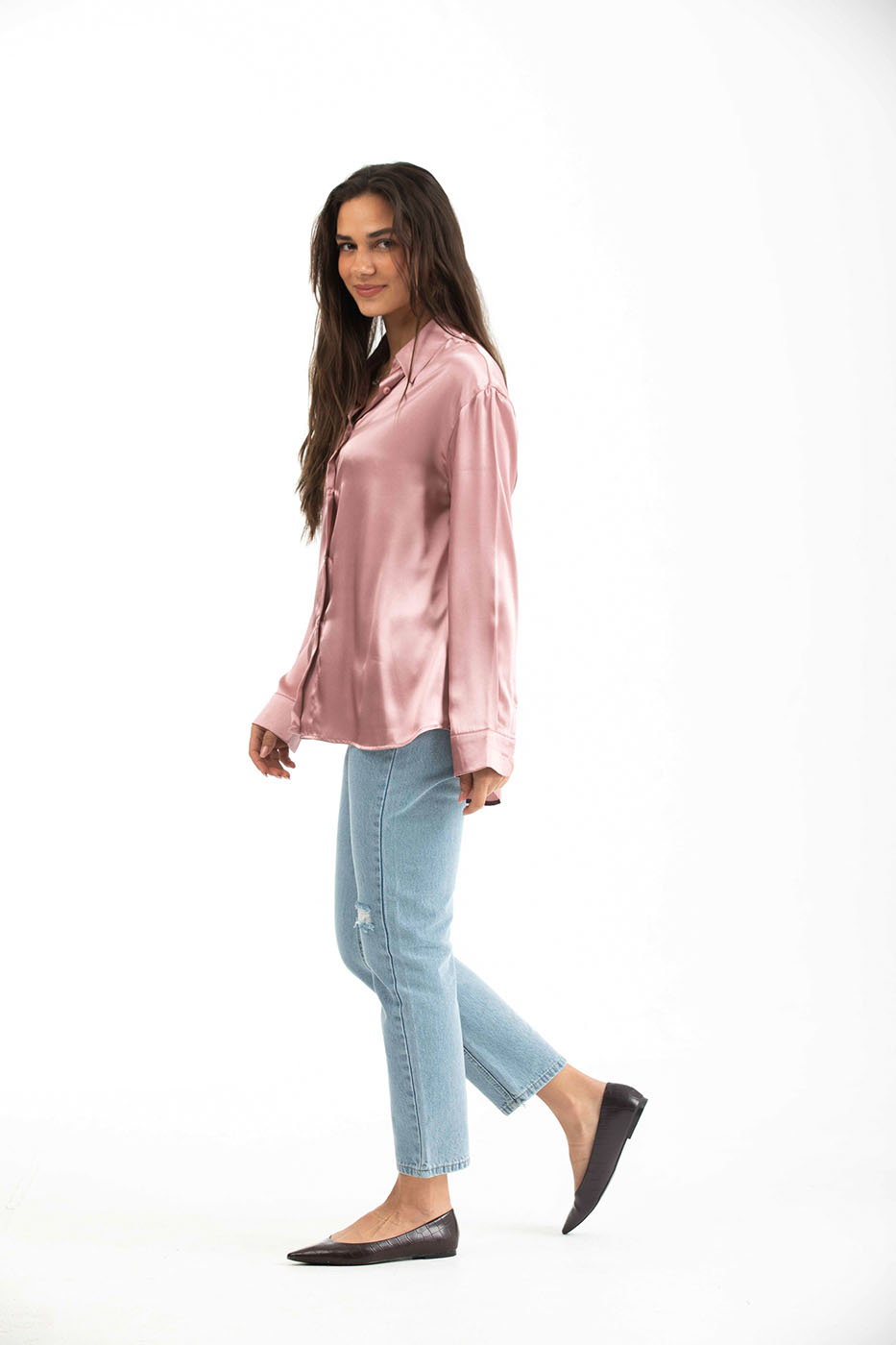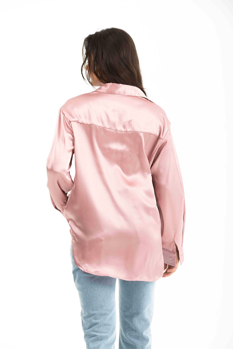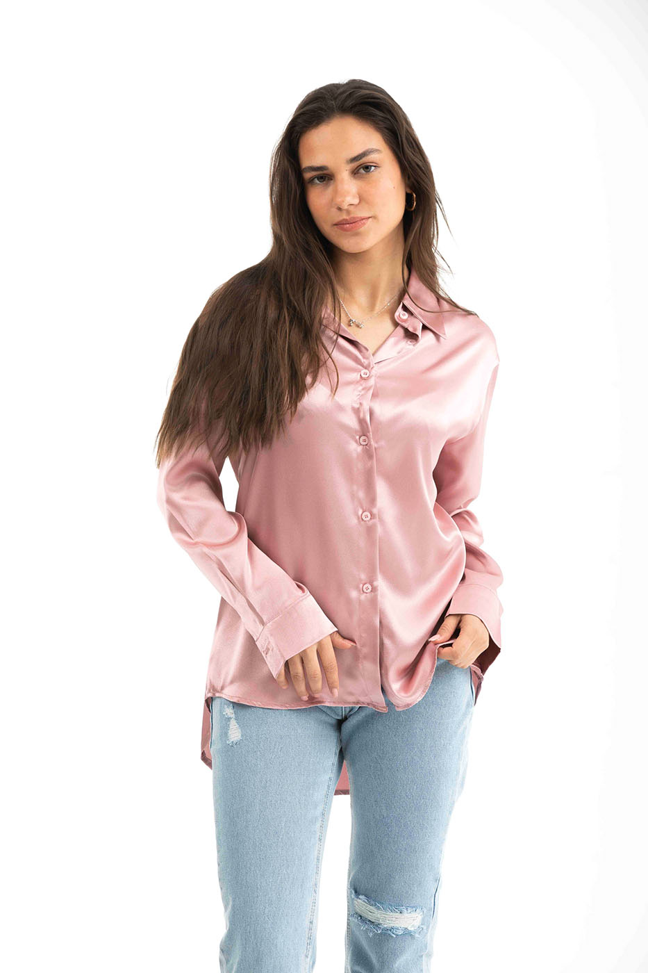 Rose Gold Buttoned Long Sleeved Satin Shirt