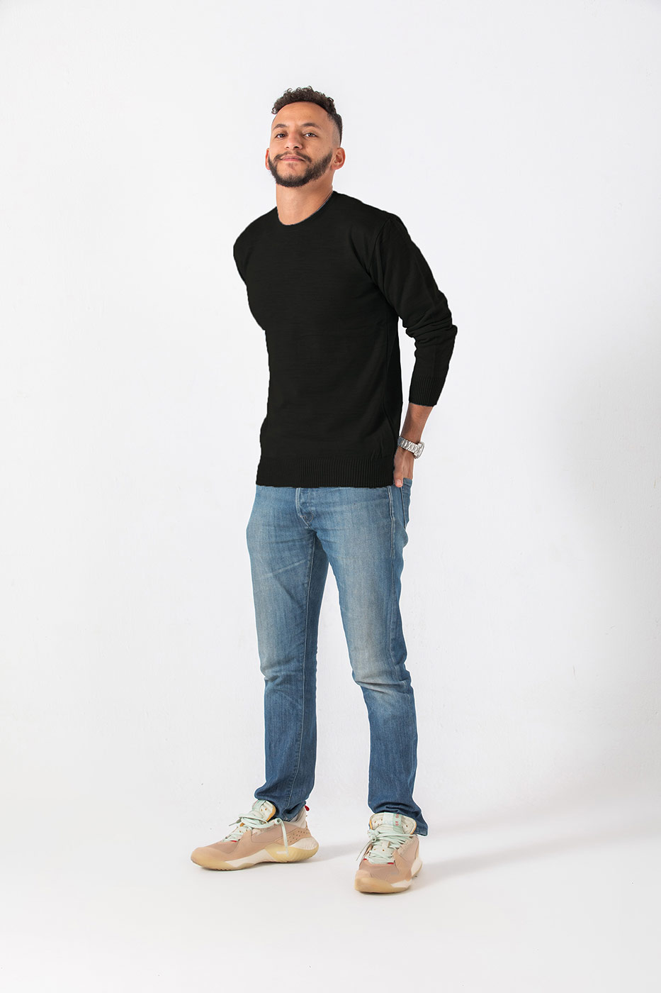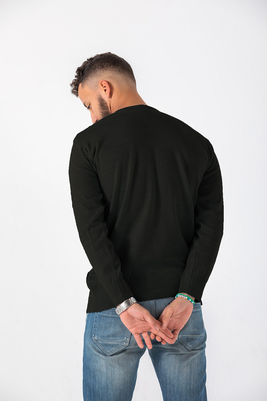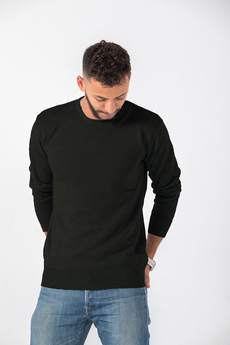 بلوفر محاك بأكمام طويلة مع تصميم عنق دائرى.