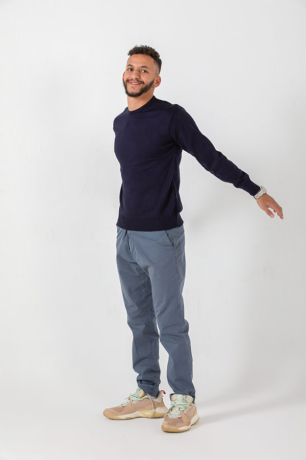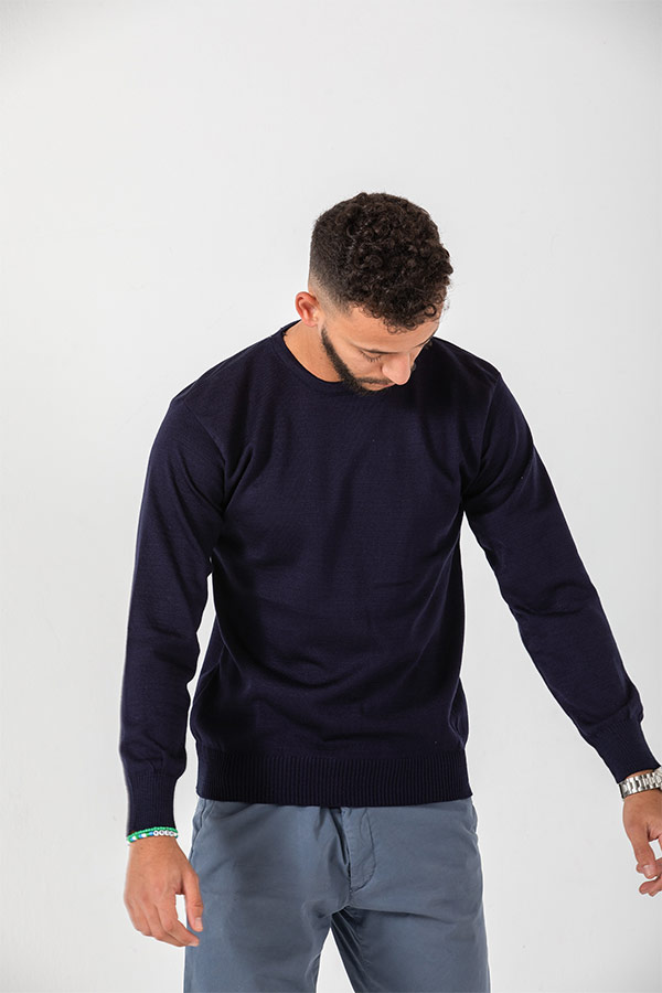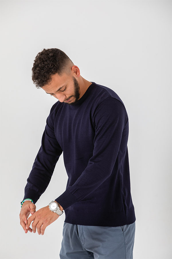 بلوفر محاك بأكمام طويلة مع تصميم عنق دائرى.