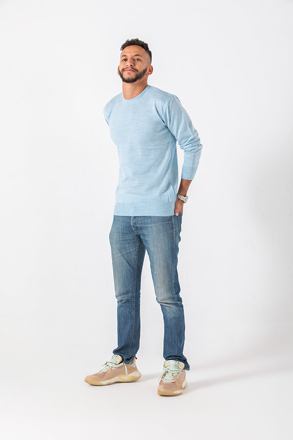 Be the first to review “Round neck pullover in light blue”