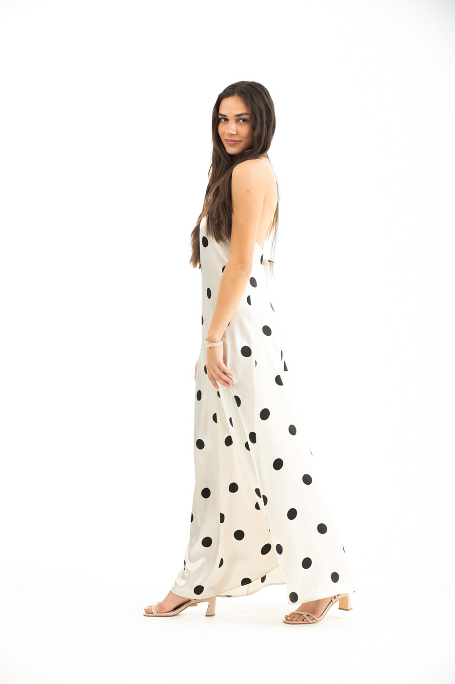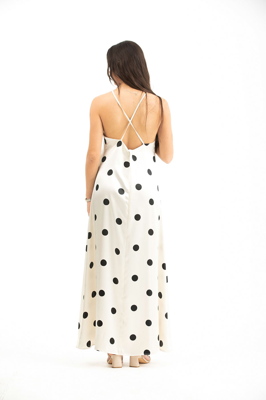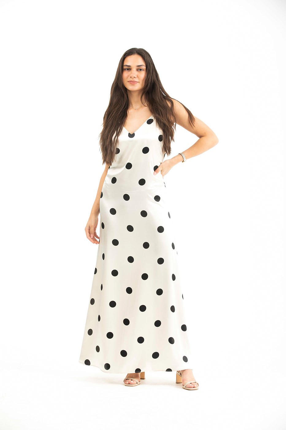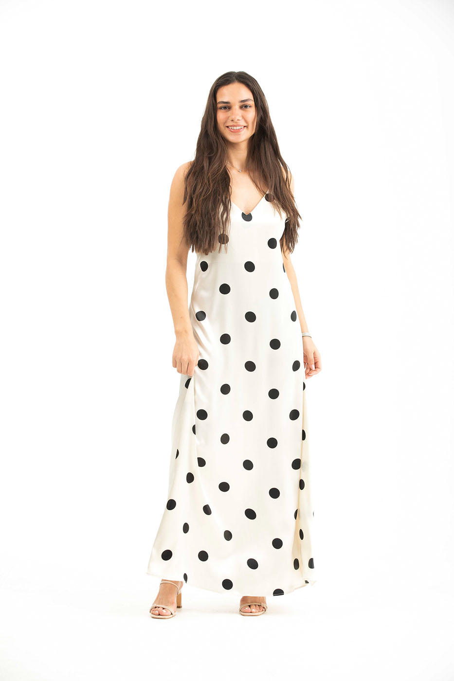 Be the first to review “Satin Starp White Black Circles Fitted Long Dress”