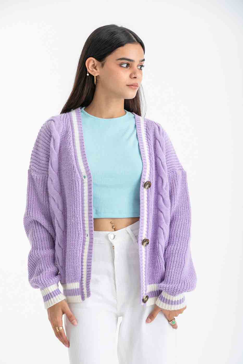Stay Warm Cardigan In Purple