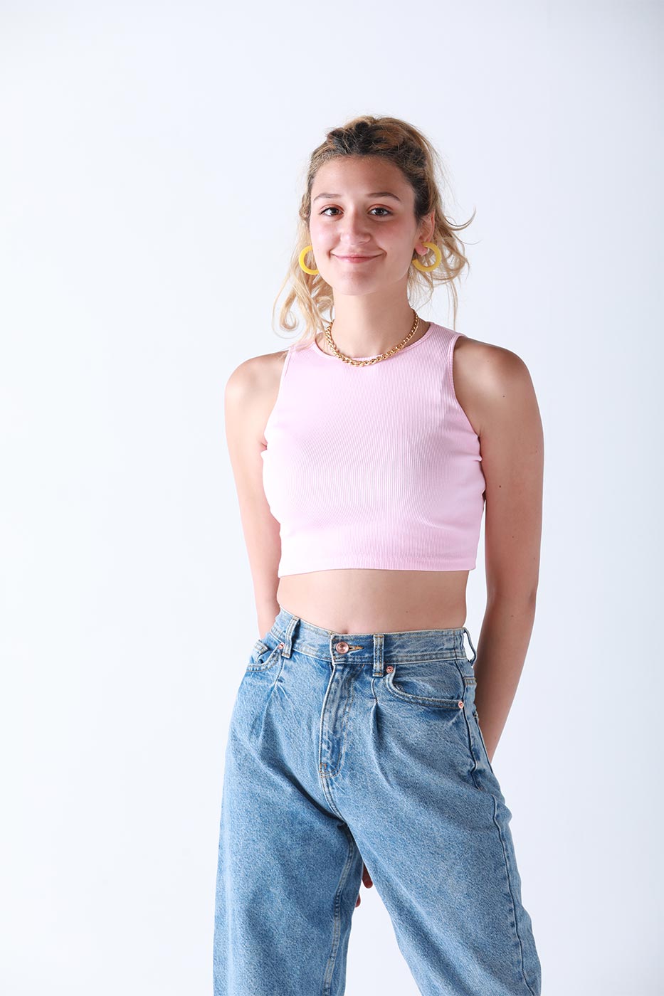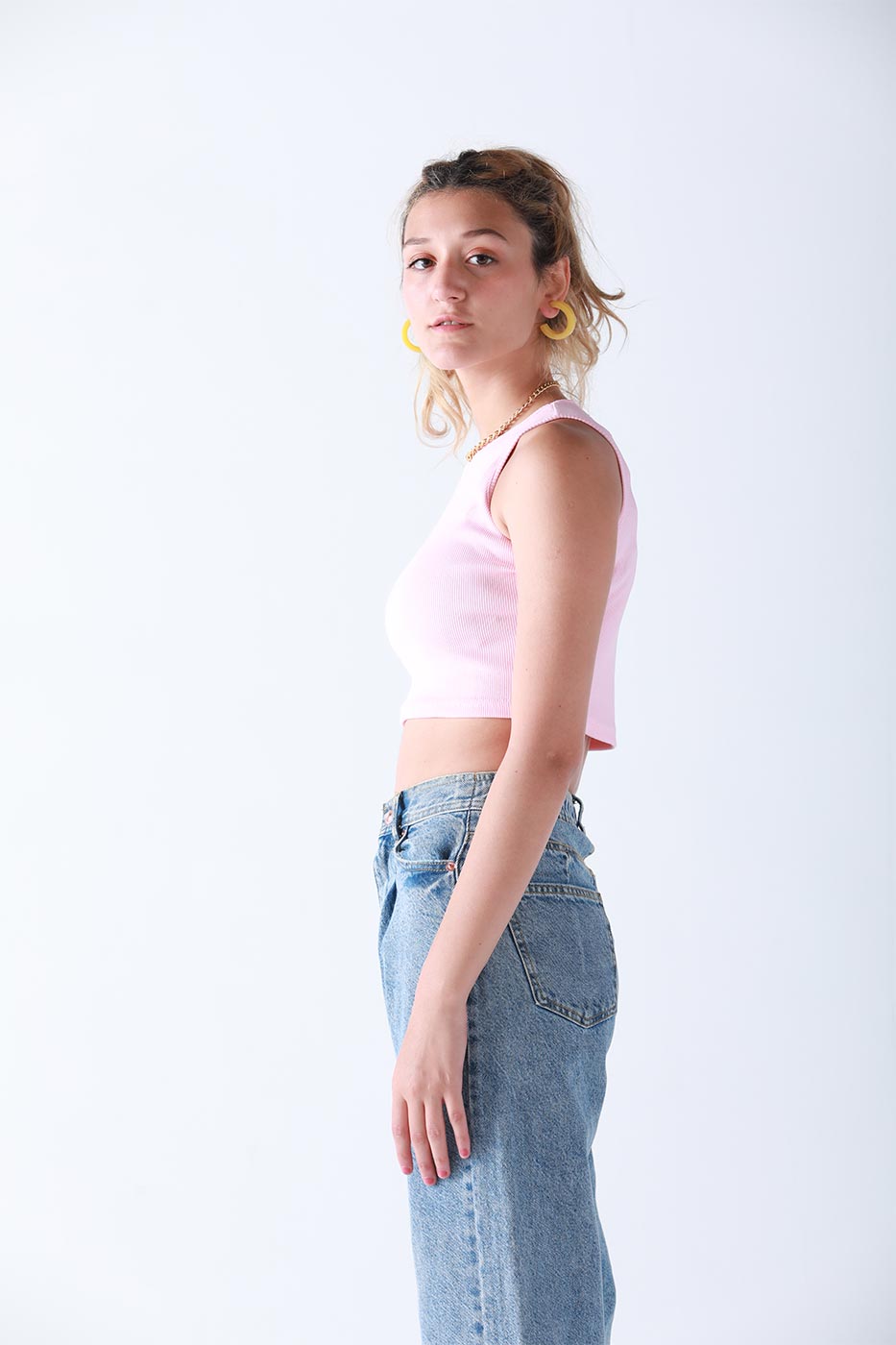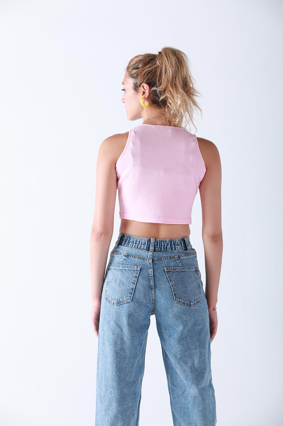 Have your morning walk by the beach in our ' Street Style ' tank top. This sleeveless top is created from ribbed fabric and features a scoop neck, cropped length and a slim fit. Style it with your favorite denim shorts and you are ready to go!Size Details