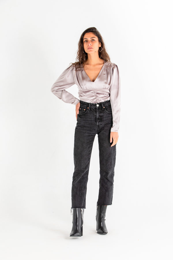 Go back to the victorian era in our ' Bridgerton ' top. The sleeved top features a V-neck, gathered detail and back zip closure.Size Details