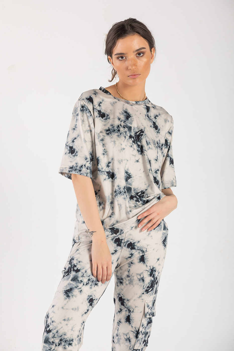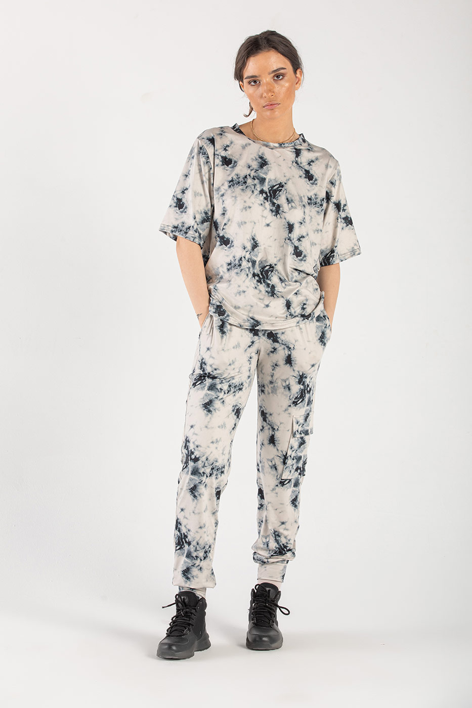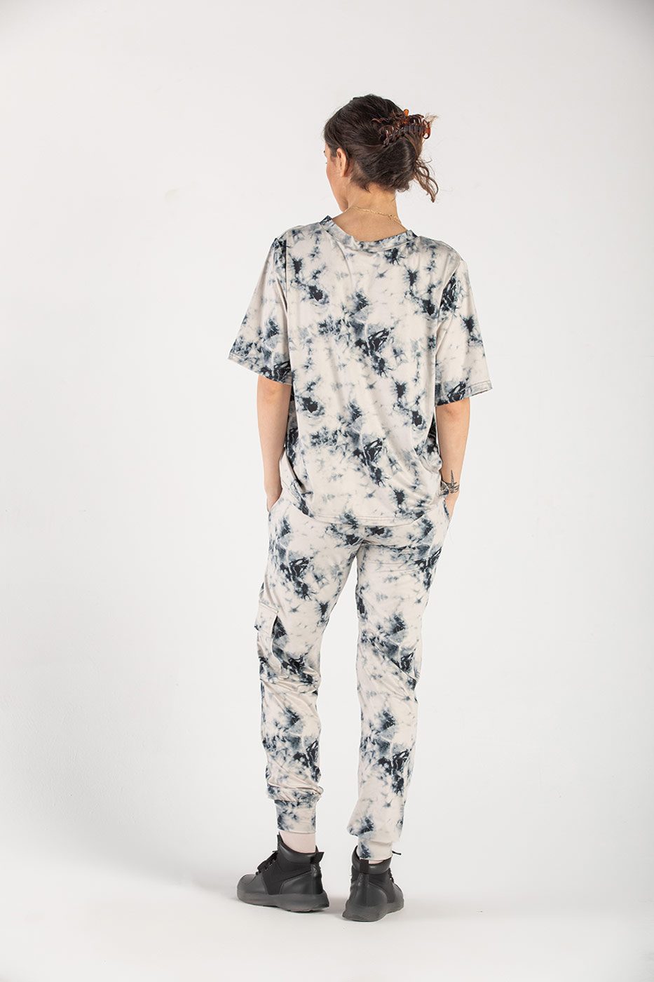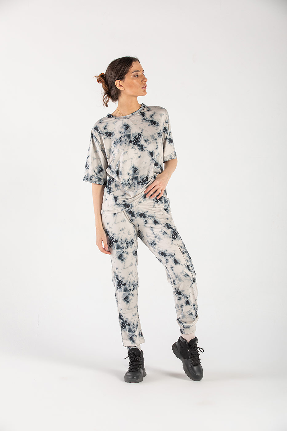Head to your favorite coffee shop for this relaxed tie dye set. The lycra set comes in two pieces: a relaxed top with a crew neck and wide cut sleeves. Straight cut bottoms with elasticated waist, functional pockets and fitted cuffs. Just put your trainers on and you are ready to go!Size Details