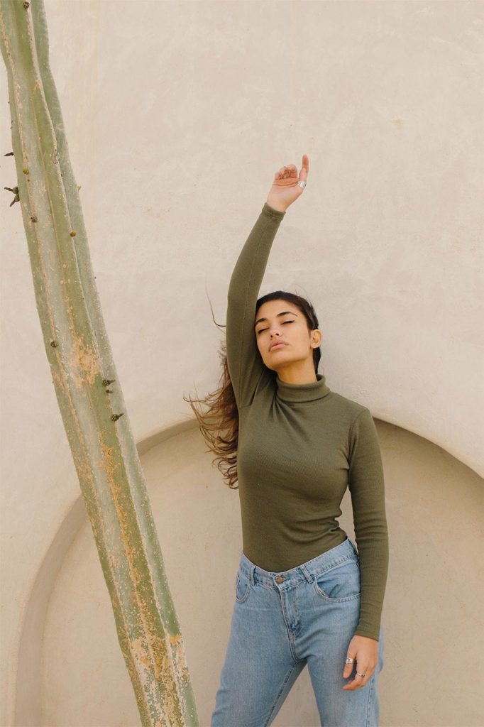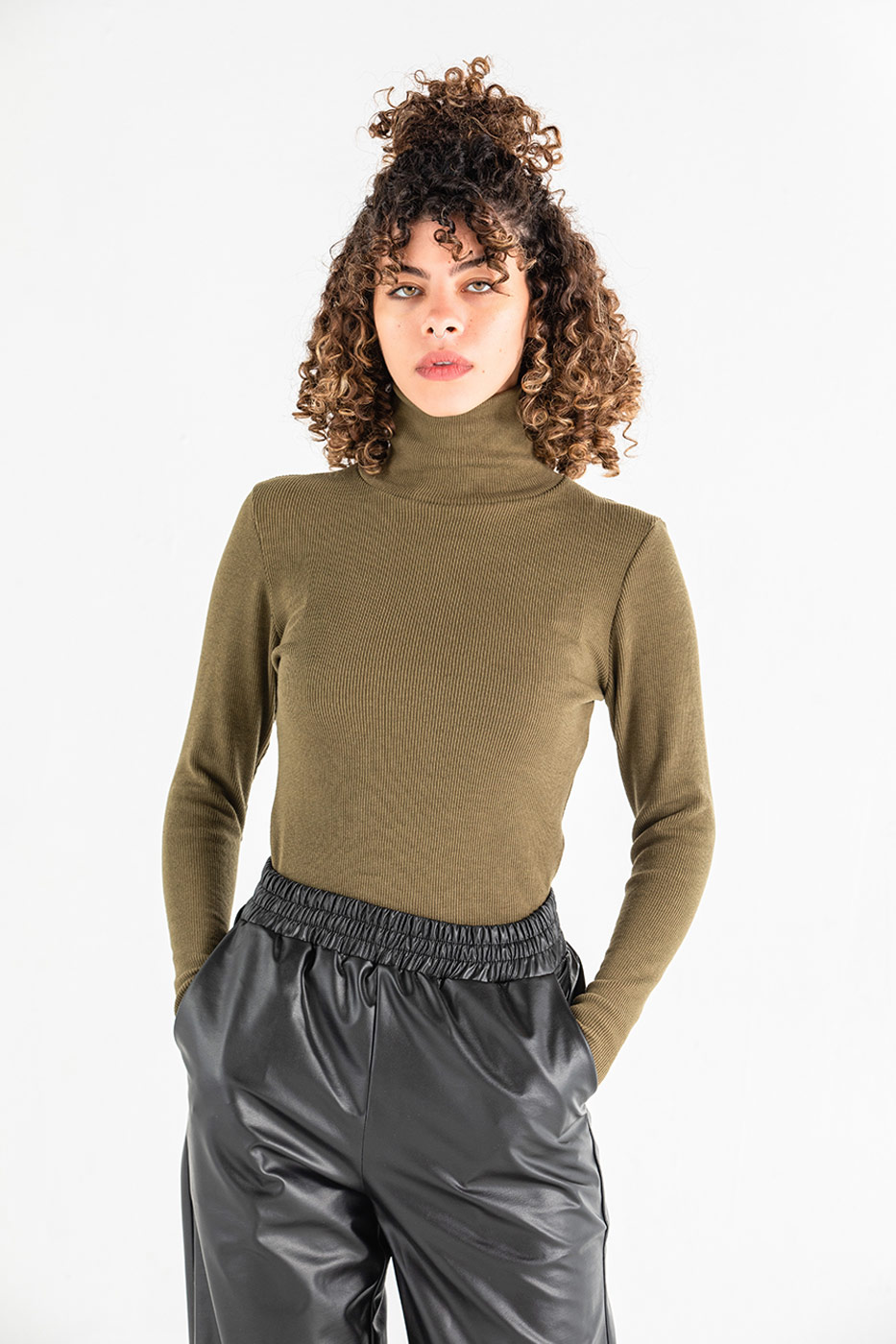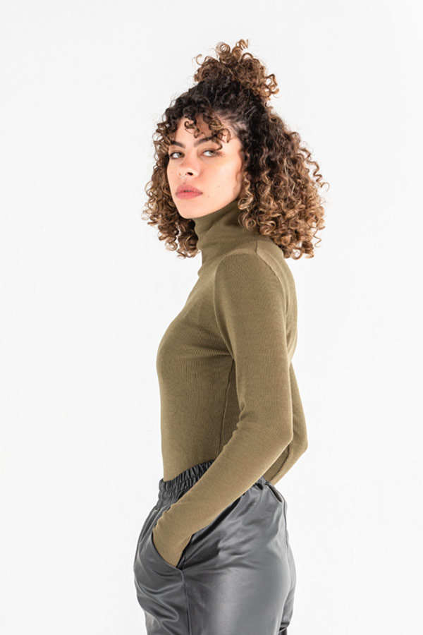 بلوزة من خامة مرنة مع قبة دائرية و أكمام طويلة.