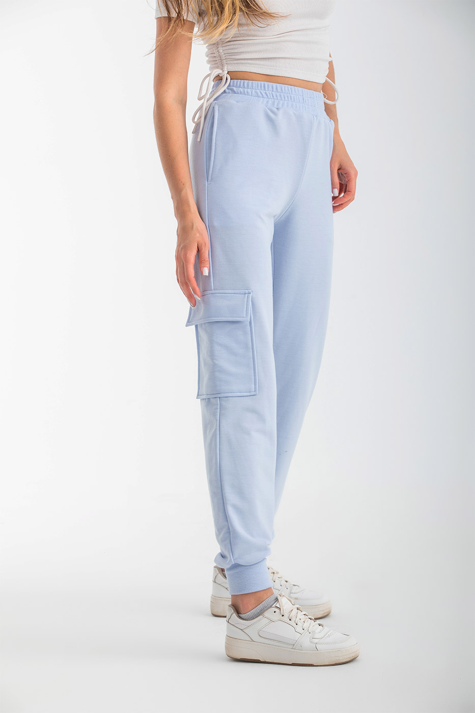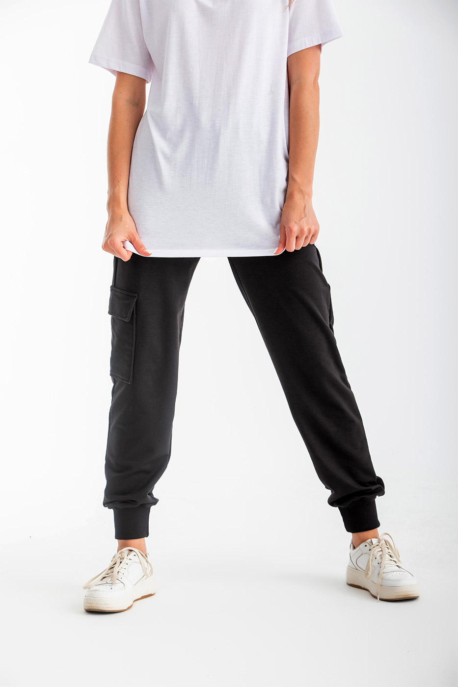Stay comfy in our ' Utility ' pants. This pants features an elasticated waist, side functional pockets, Cargo-style side leg pocket and fitted cuffs.Care Instructions