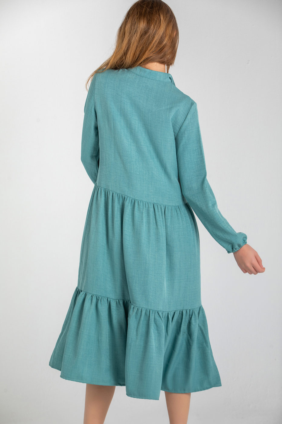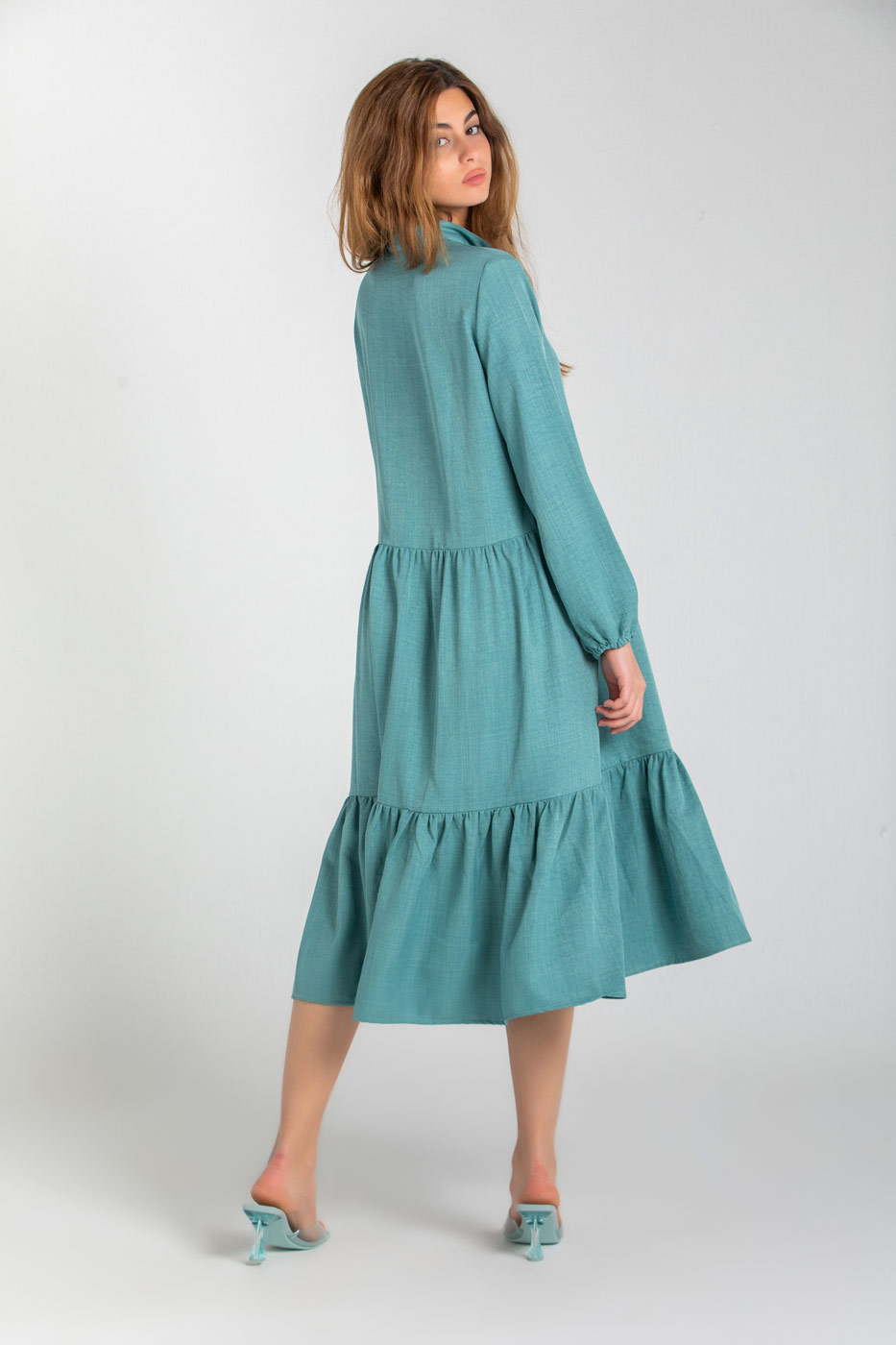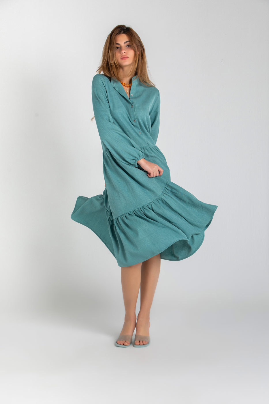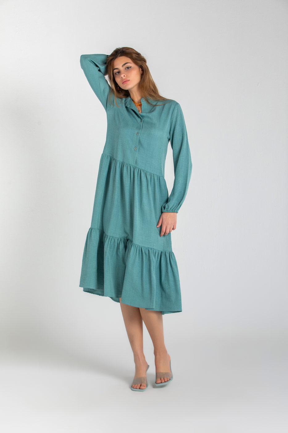 فستان بقصة متدرجة مع أكمام طويلة و أزرار أمامية.