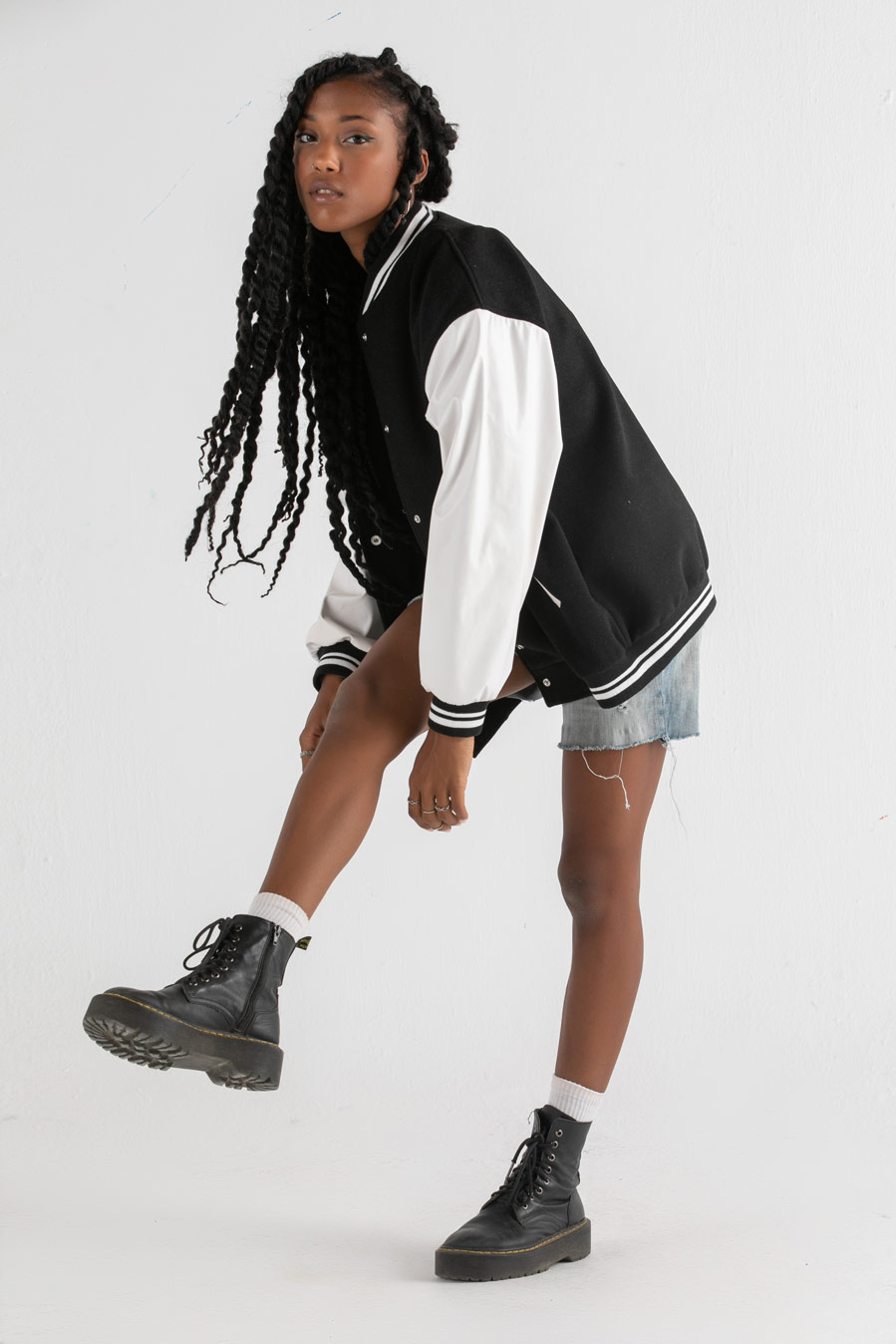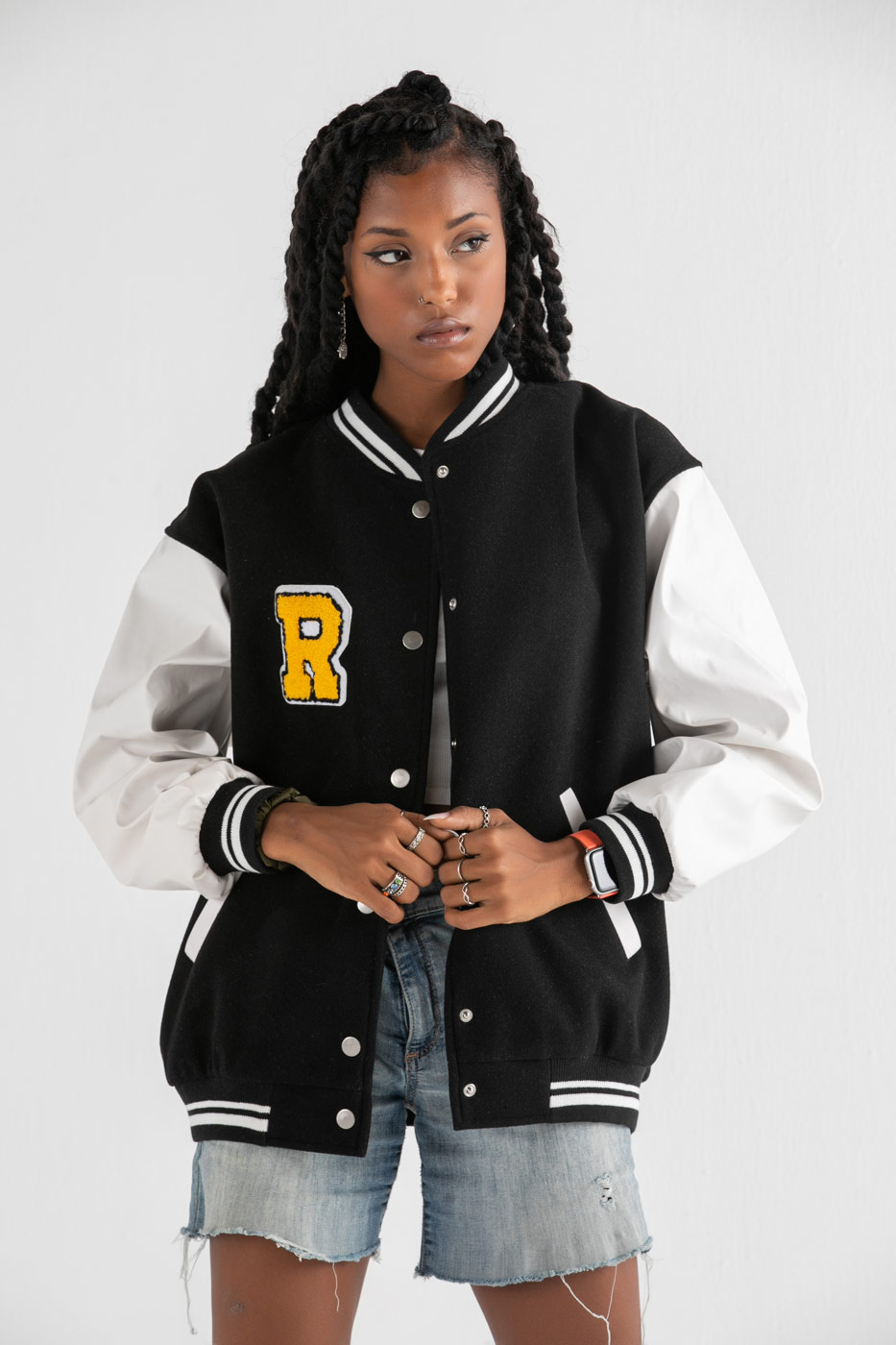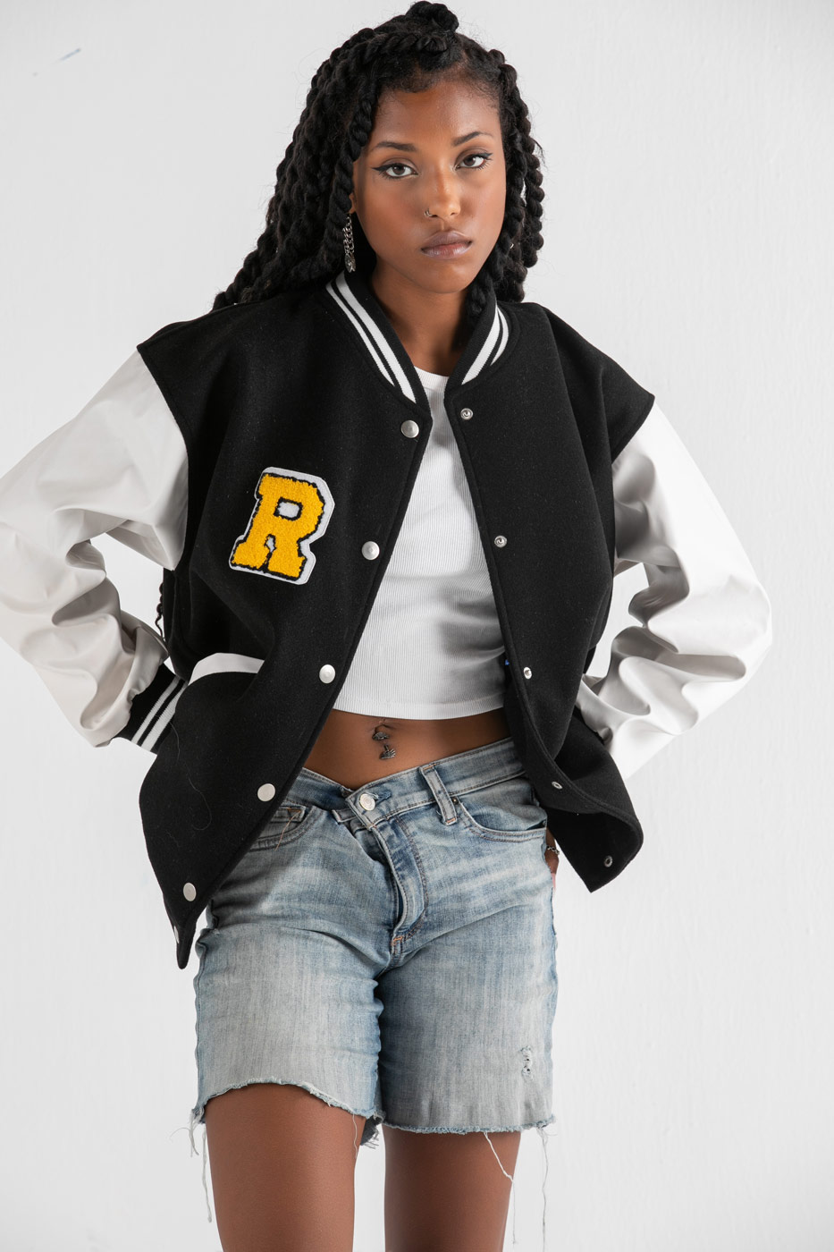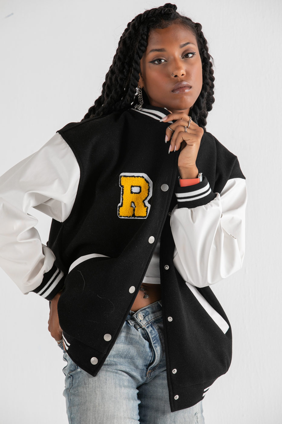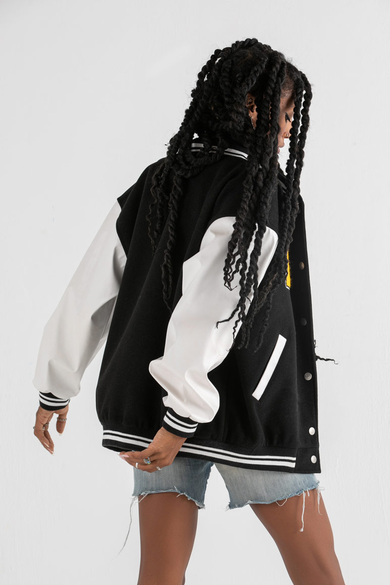 Run the Game in our VarCITY Jacket with its Wide Leather Sleeves and Oversized Fit this Winter! With it's Collegiate Aesthetic, this jacket is a guaranteed addition to your Street Style!Size Details