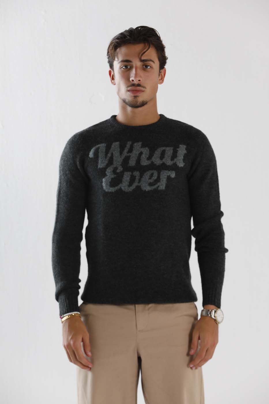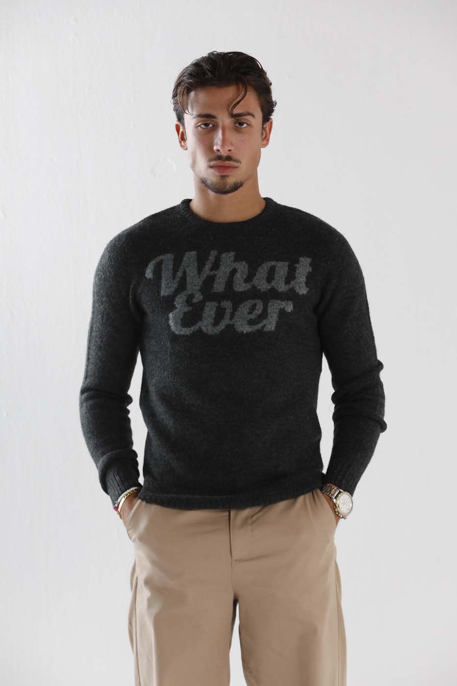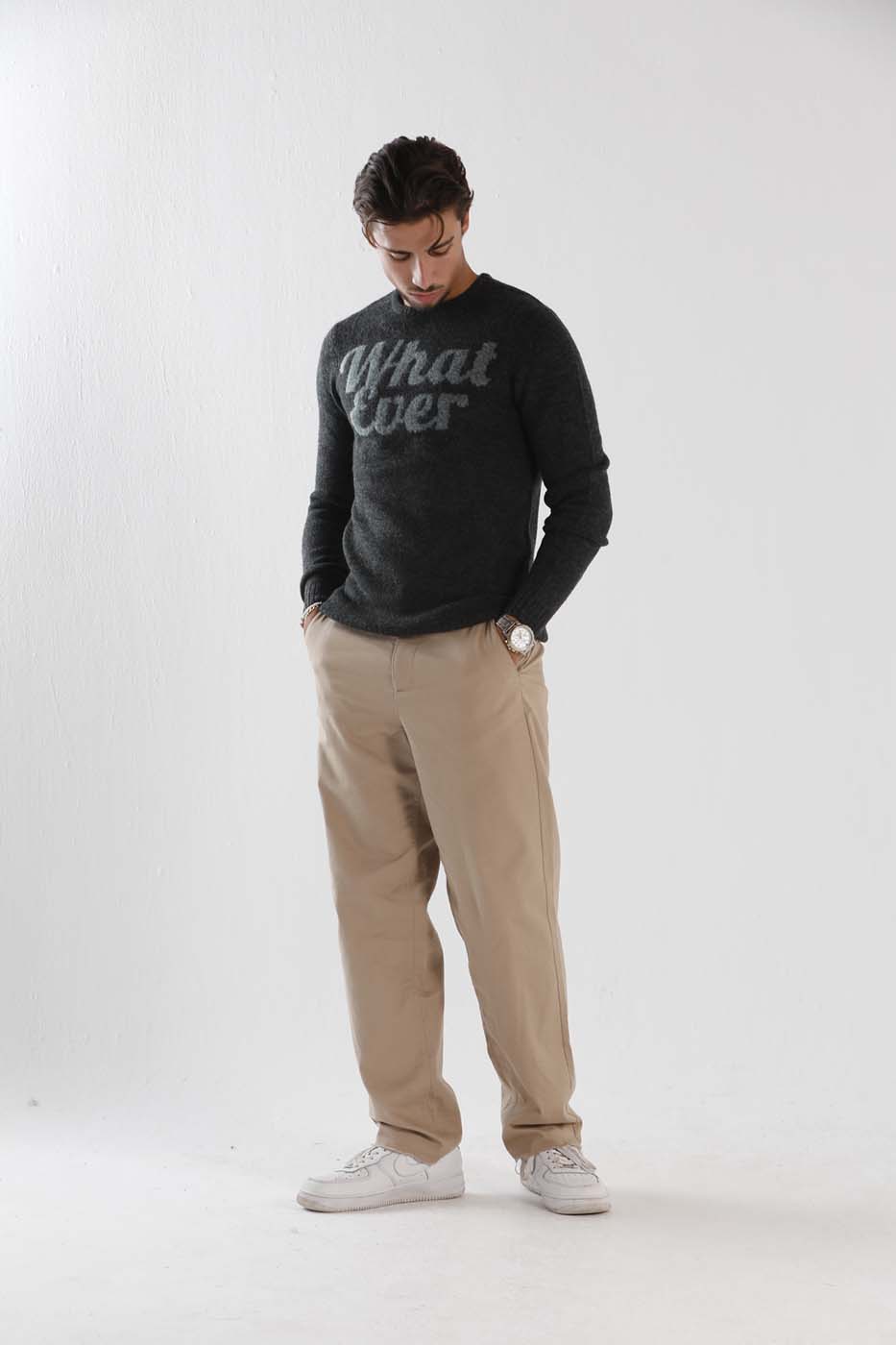 بلوفر محاك بأكمام طويلة مع تصميم عنق دائرى.