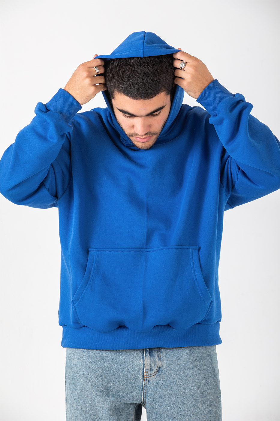 Loose fit sweatshirt with adjustable hooded collar and long sleeves. Front pouch pocket. Ribbed trim.Size Details