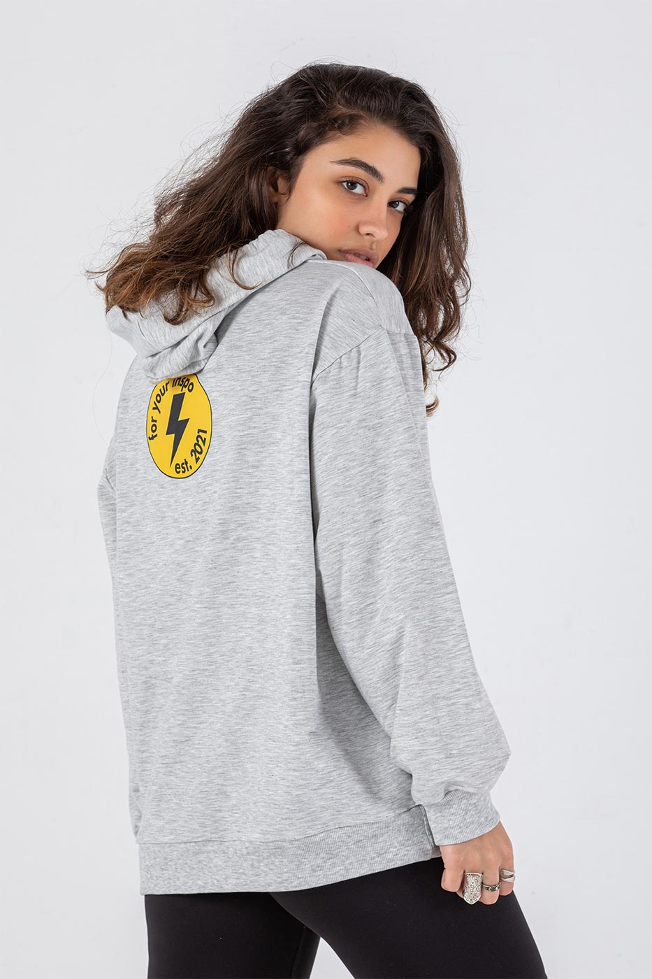 Oversized hoodie in lightweight sweatshirt fabric made from a cotton blend with a motif on the front. Jersey-lined, drawstring hood, dropped shoulders and long, wide sleeves, the light hoodie is suitable for every season, 50% cotton 50% polyester.Size Details