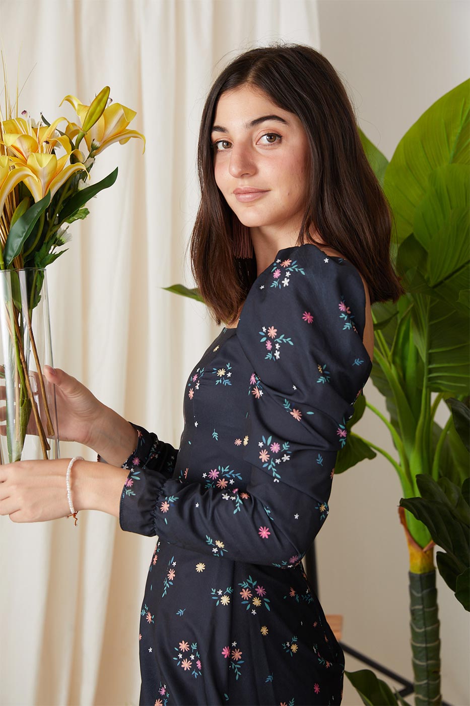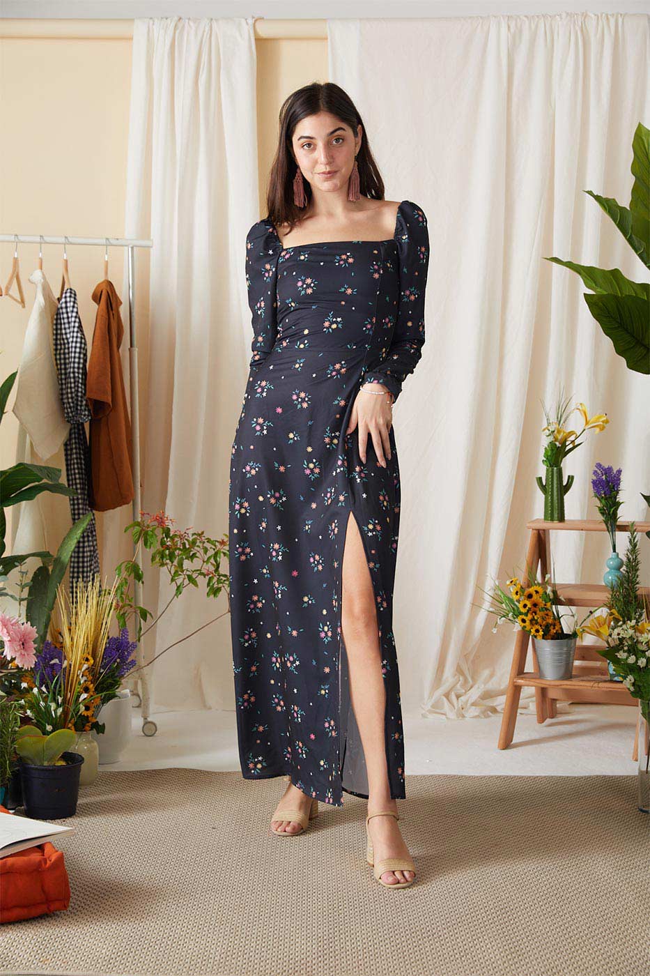 Enjoy an afternoon beach walk in this floral cover-up. This cover-up features an overall floral print design, square neck, long puffed sleeves with elasticated cuffs, square back with a back zip closure and a high side slit. Just put your sandals on and you're ready to go!Size Details
